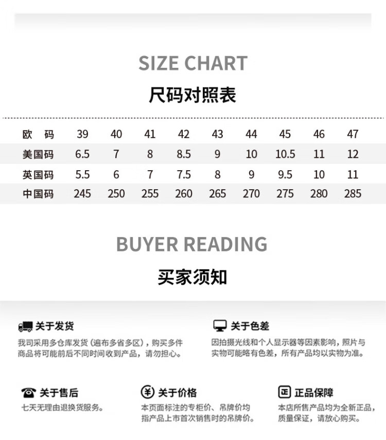 China (cm) 36 - 37 38 - 39 40 - 42 43 - 44 45 - 47