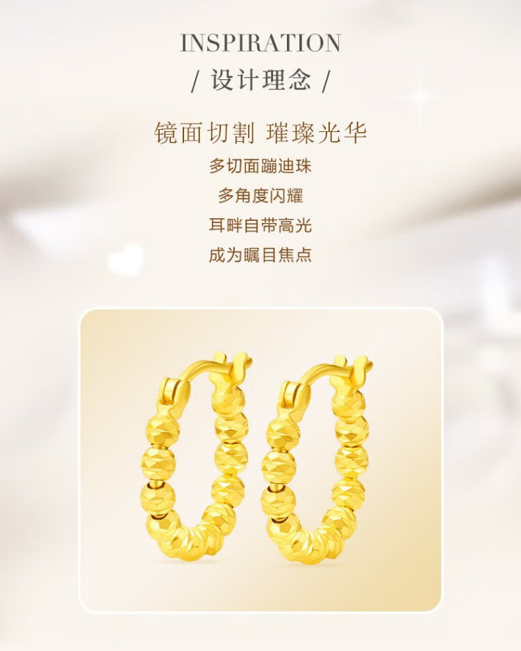 Zokai yellow 18K gold earrings, bouncy beads, round bead earrings, versatile birthday gift E03602