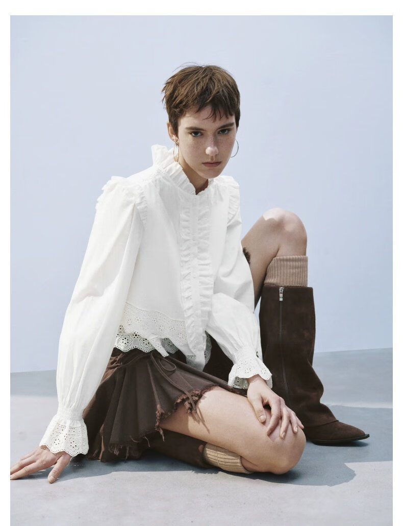 UR2025 Spring New Women's French Romantic Hollow Lace Loose Cardigan Shirt UYL250014