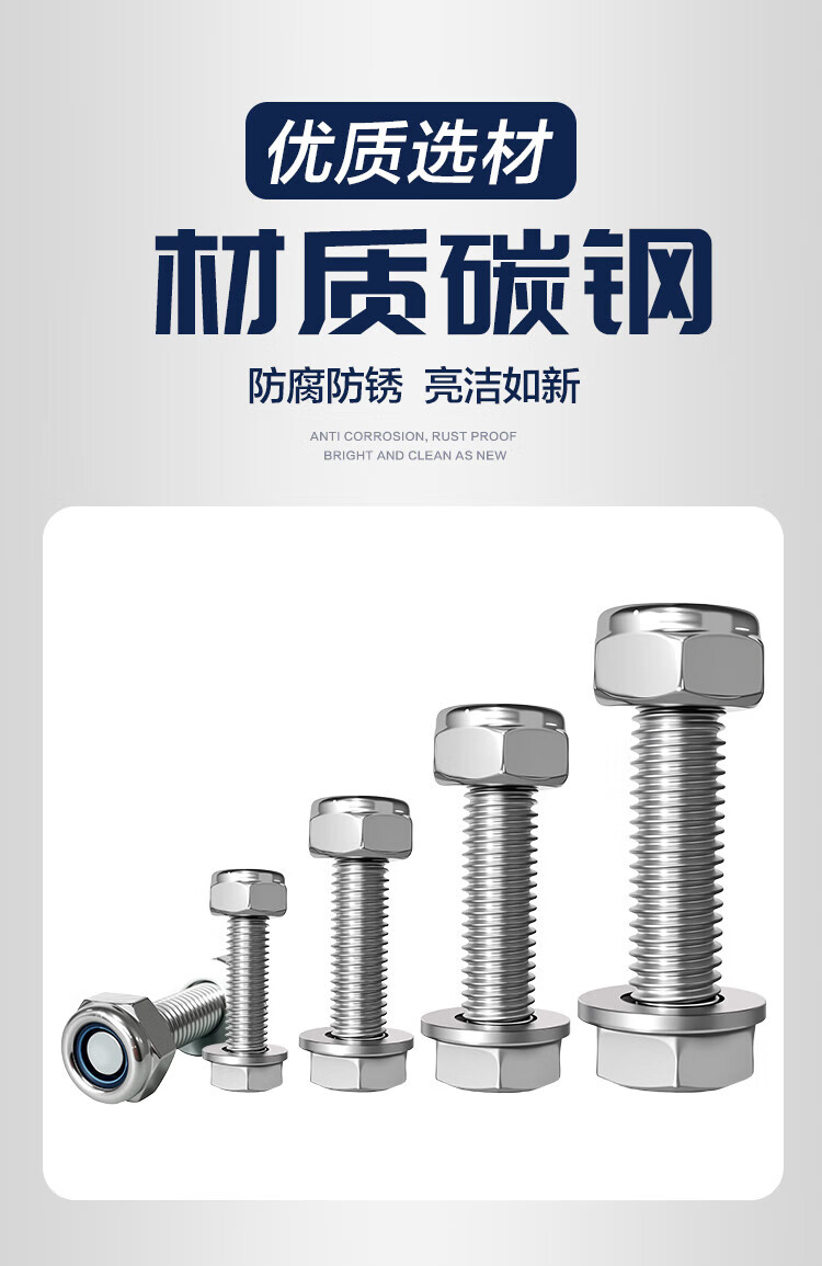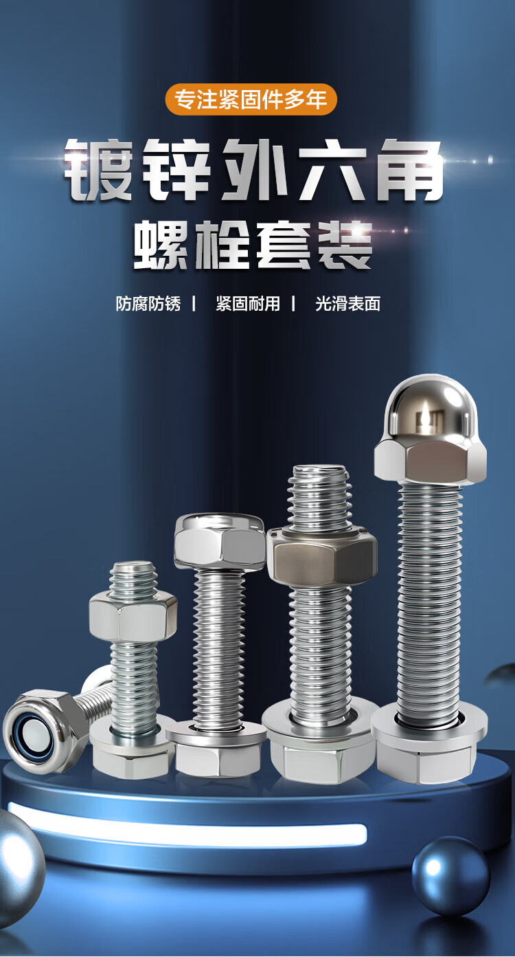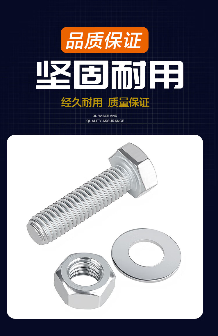 Fujiandu galvanized external hexagonal bolt set screw flat washer washer nut combination bolt 8.8 grade medium carbon steel M8*30 (30 sets)