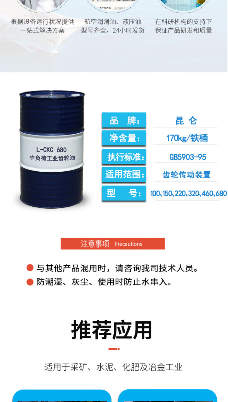 KunLun L-CKC No. 320 medium load industrial closed gear oil industrial gear lubricant 170kg/200 liters