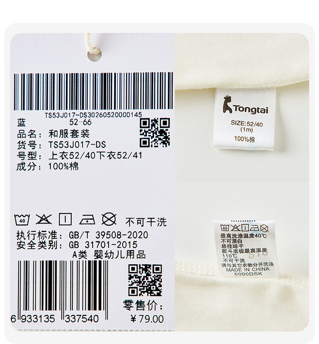 Tongtai (TONGTAI) baby kimono suit spring and autumn pure cotton newborn clothes newborn baby monk suit full moon suit blue 59cm