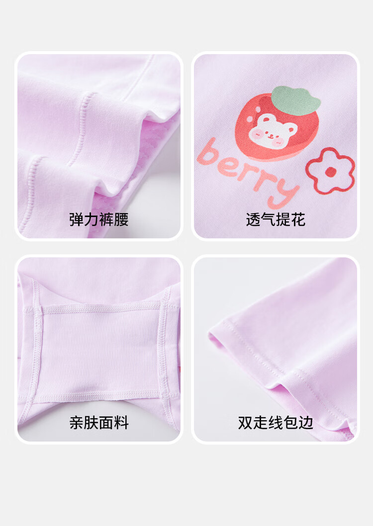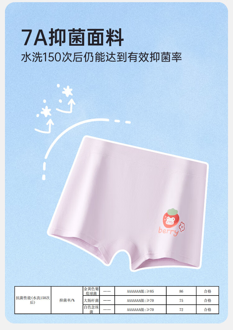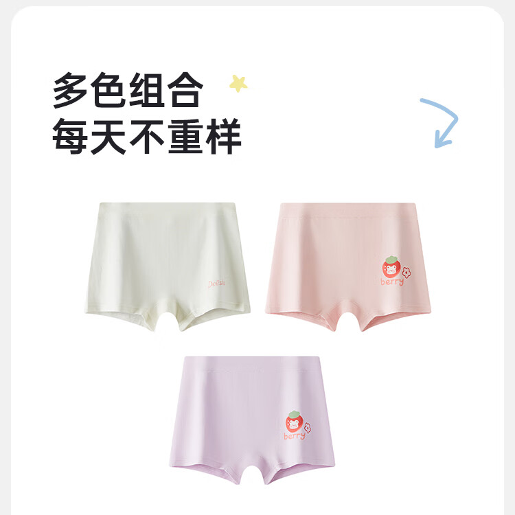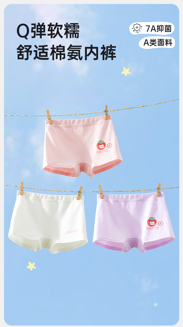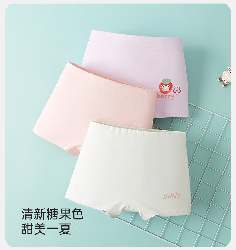 DEESHA 7A antibacterial 3-pack girls' soft, hip-free boxer briefs, comfortable cotton and polyurethane children's underwear