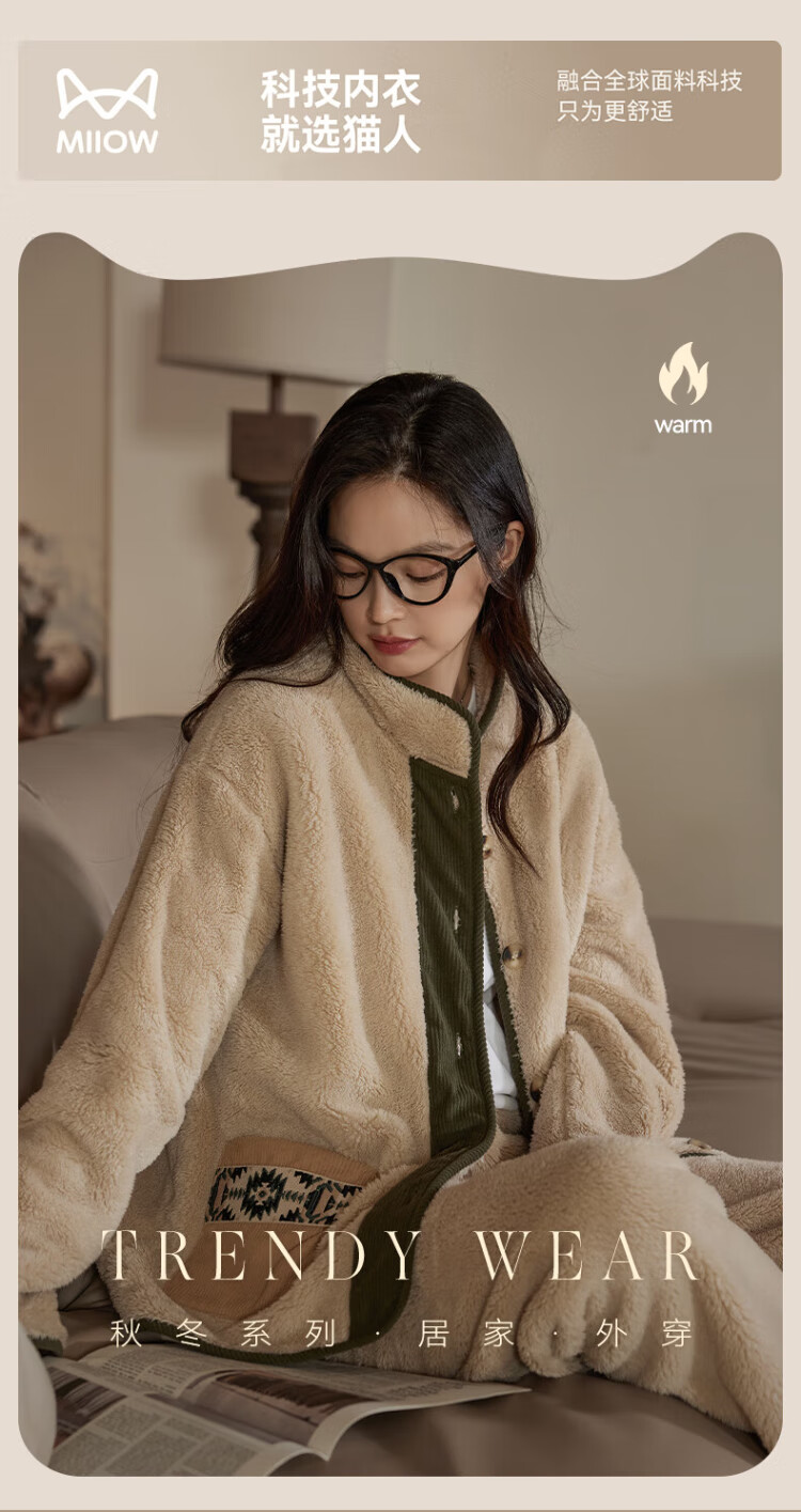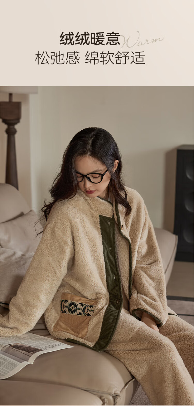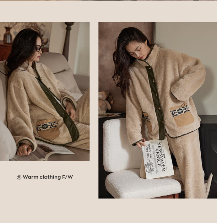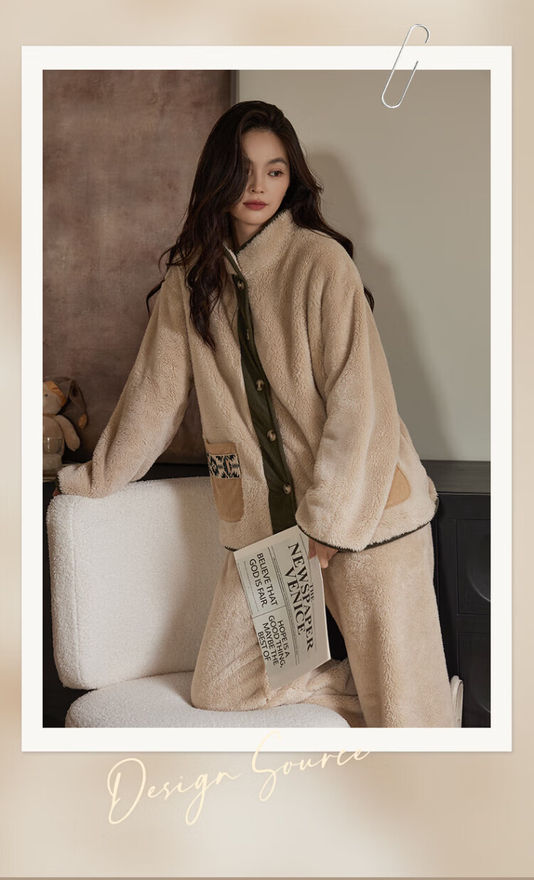 Catman stand-up collar cardigan coral velvet women's pajamas women's winter warm and wearable home wear set 25 years new product