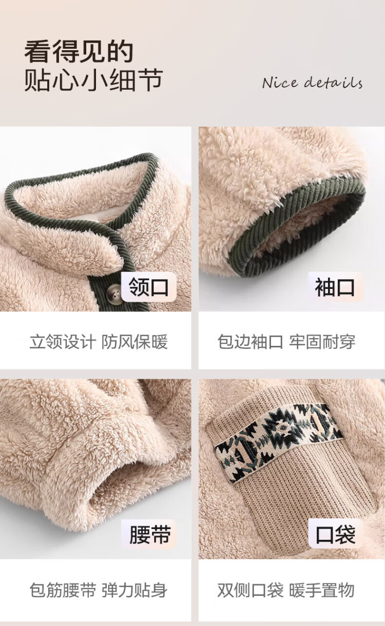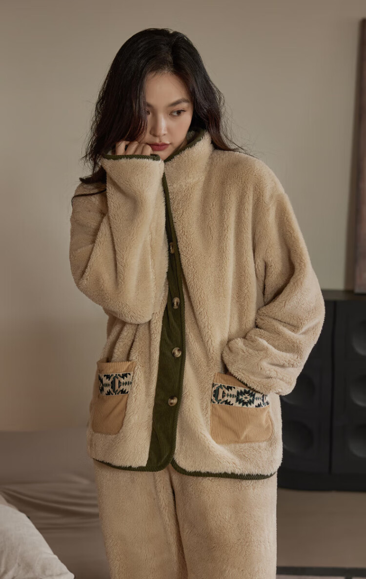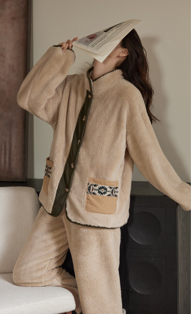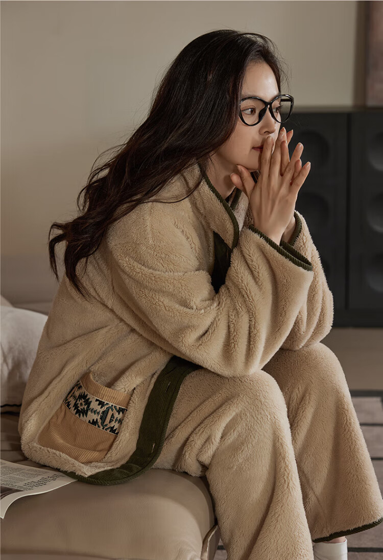 Catman stand-up collar cardigan coral velvet women's pajamas women's winter warm and wearable home wear set 25 years new product