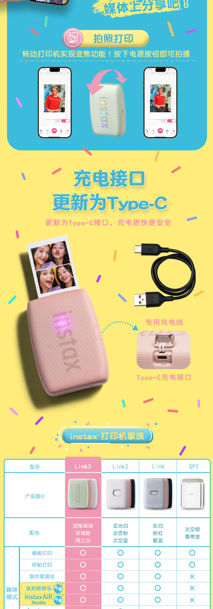 INSTAX Fuji instax mini Link3 mobile photo printer rose pink stand-alone standard
