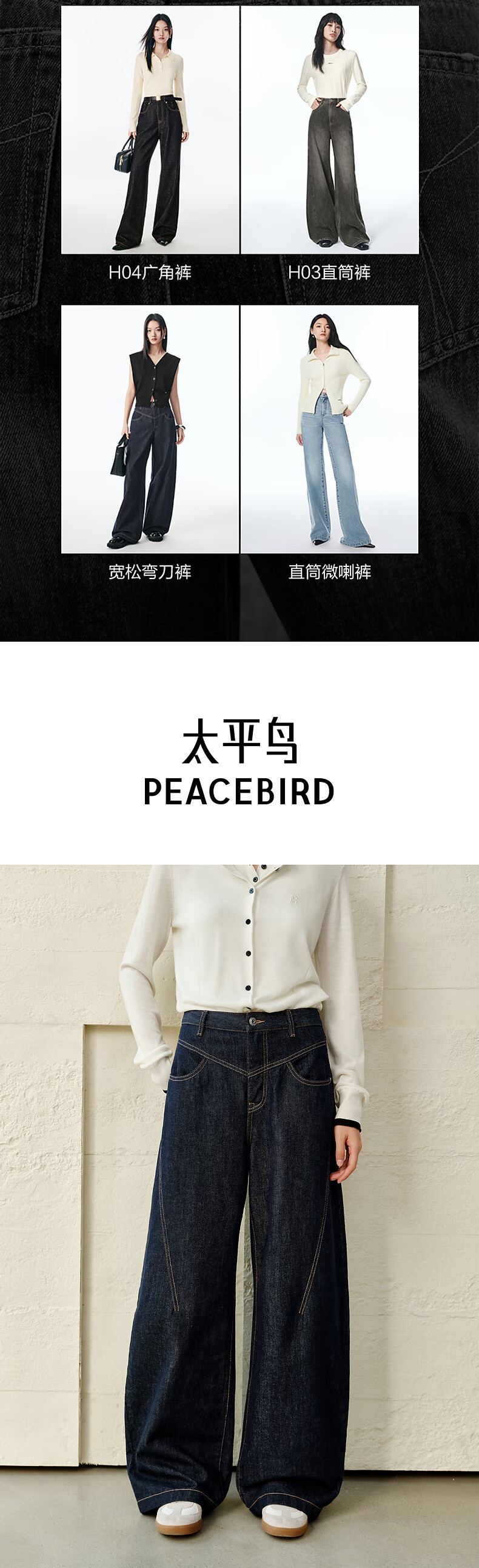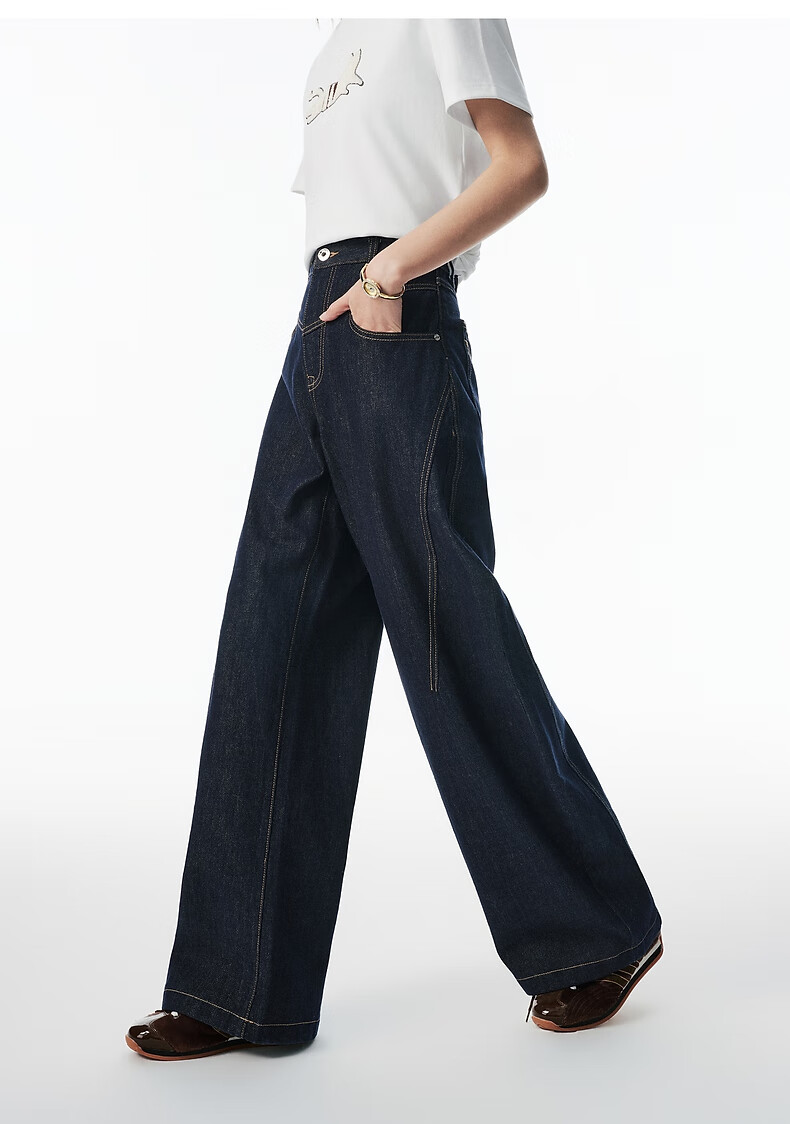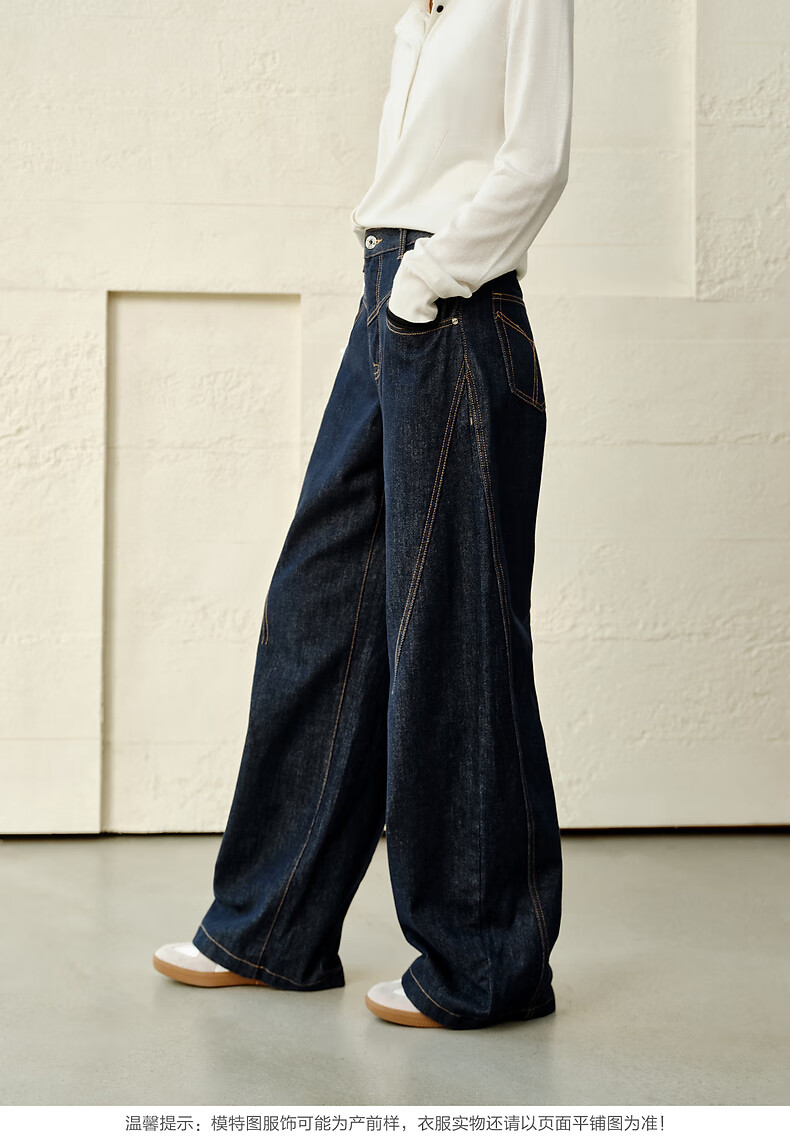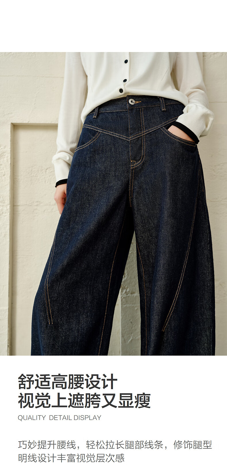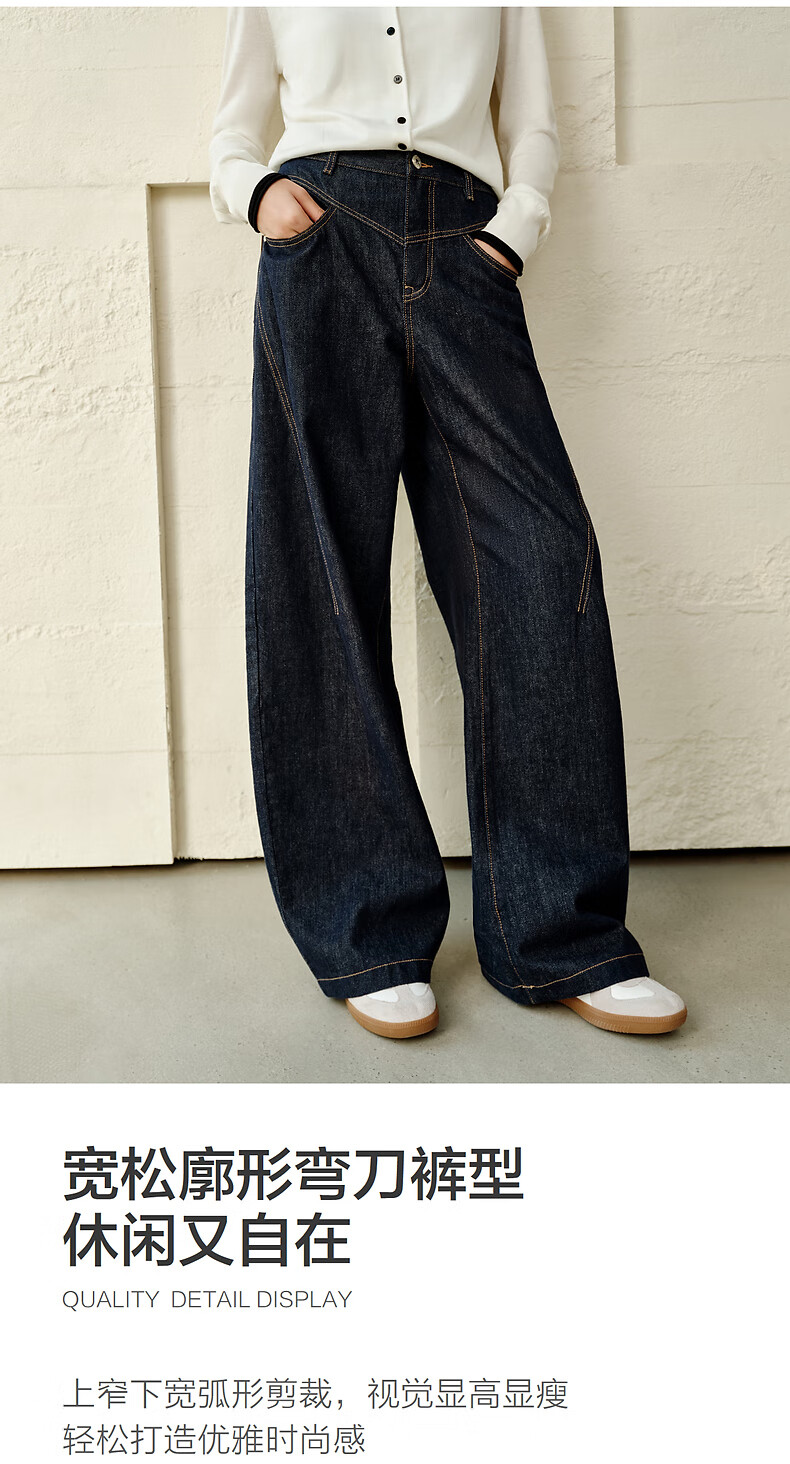 PEACEBIRD Women's Jeans High Waist Scimitar Autumn Loose Slim Banana Wide Leg Denim Dark Blue M