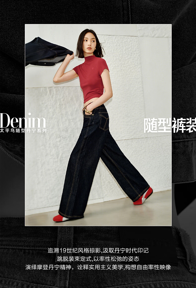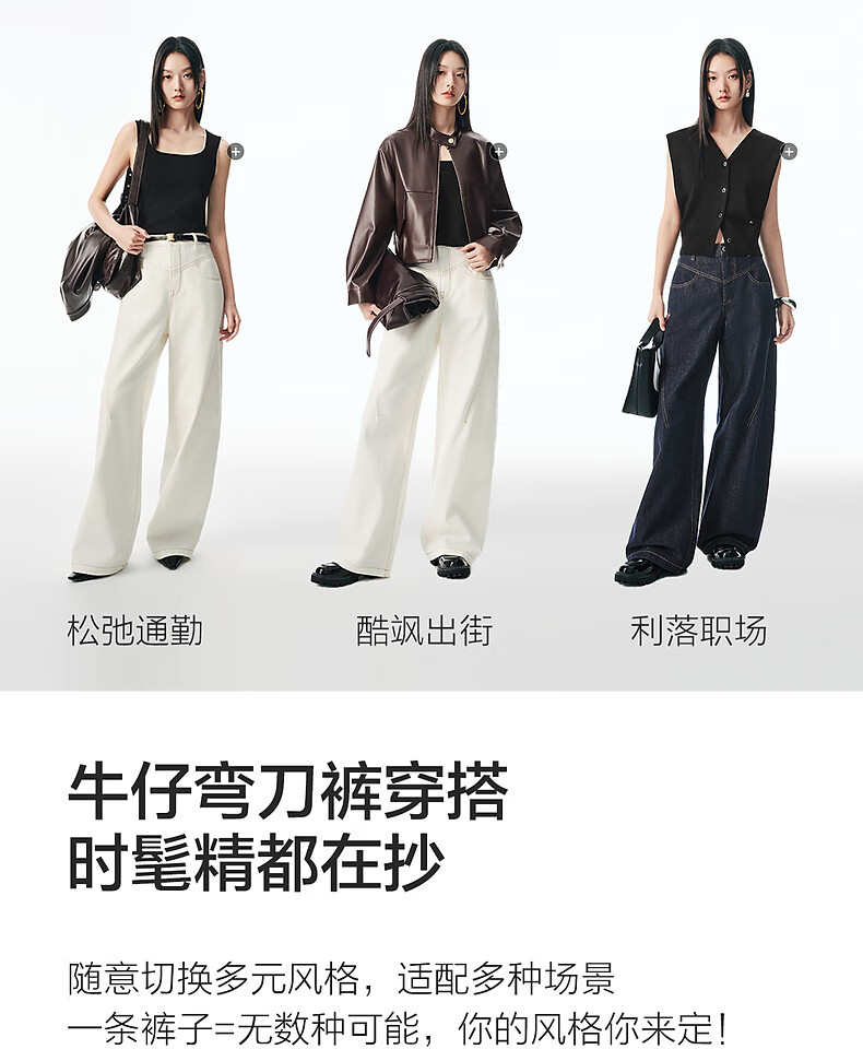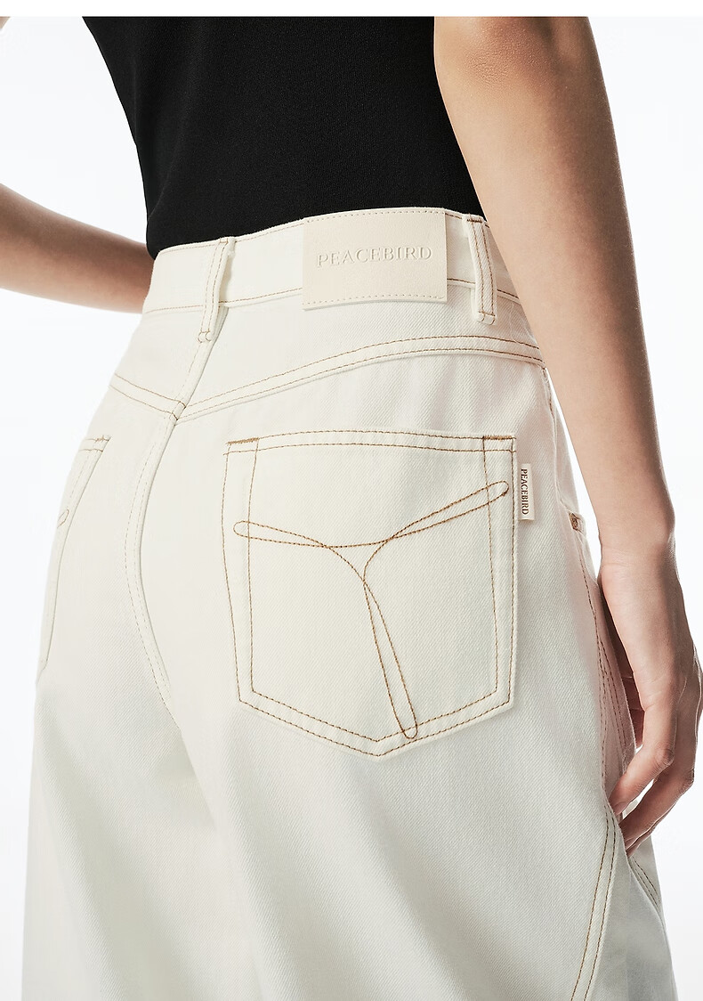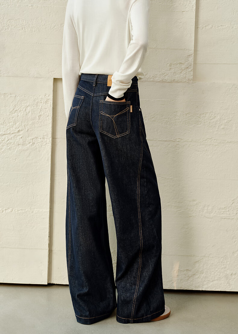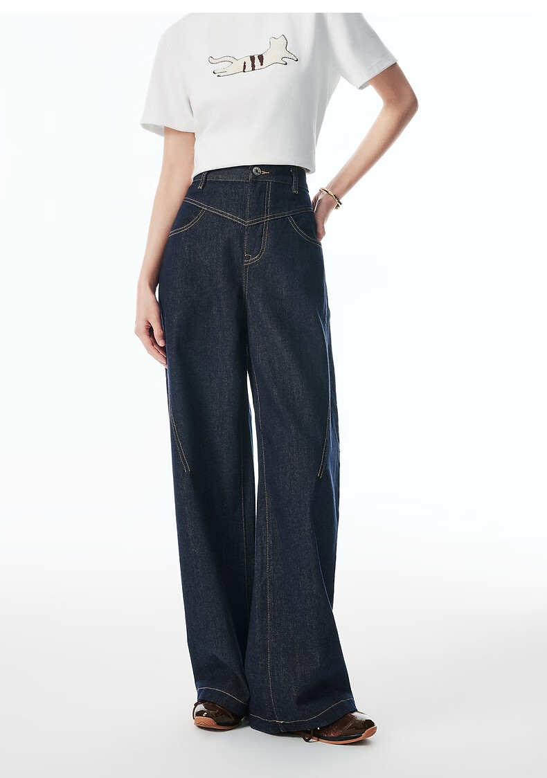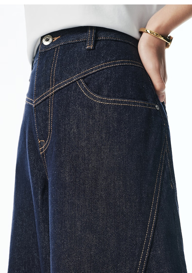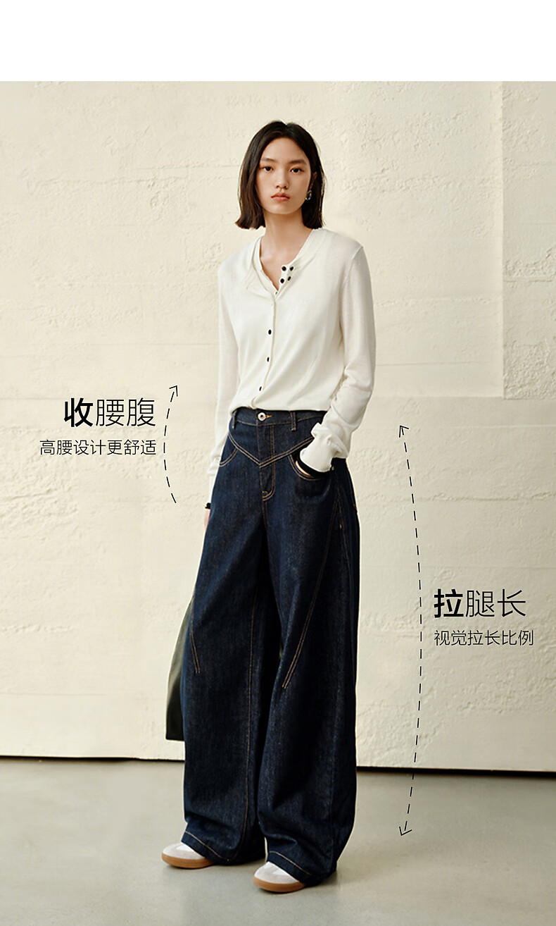 PEACEBIRD Women's Jeans High Waist Scimitar Autumn Loose Slim Banana Wide Leg Denim Dark Blue M