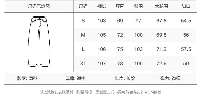 Outseam (cm) 99 cm 101.5 cm 104 cm 106.5 cm 109 cm
