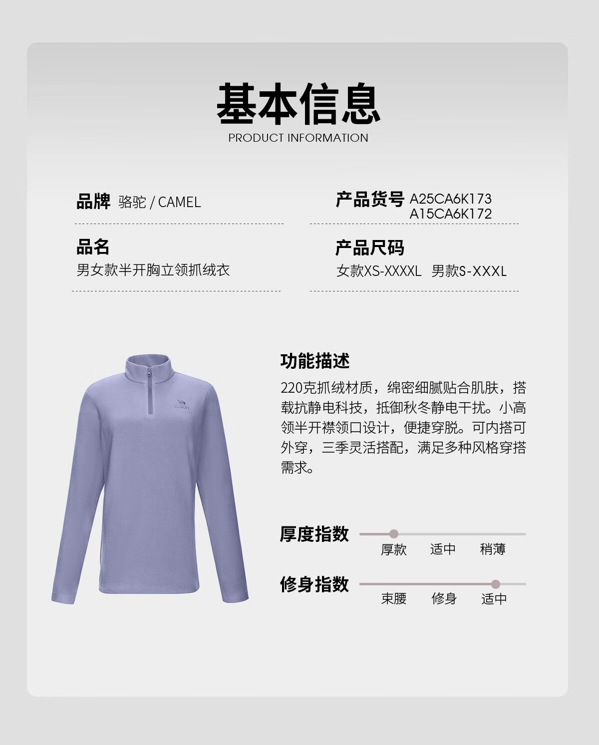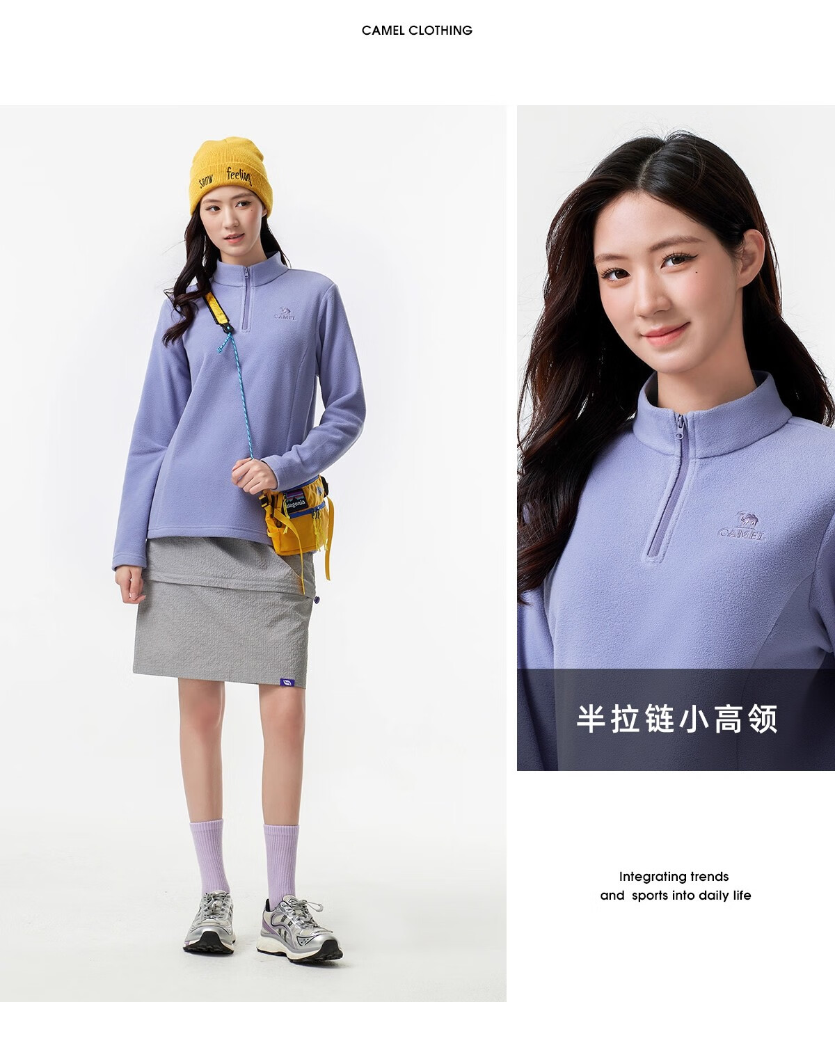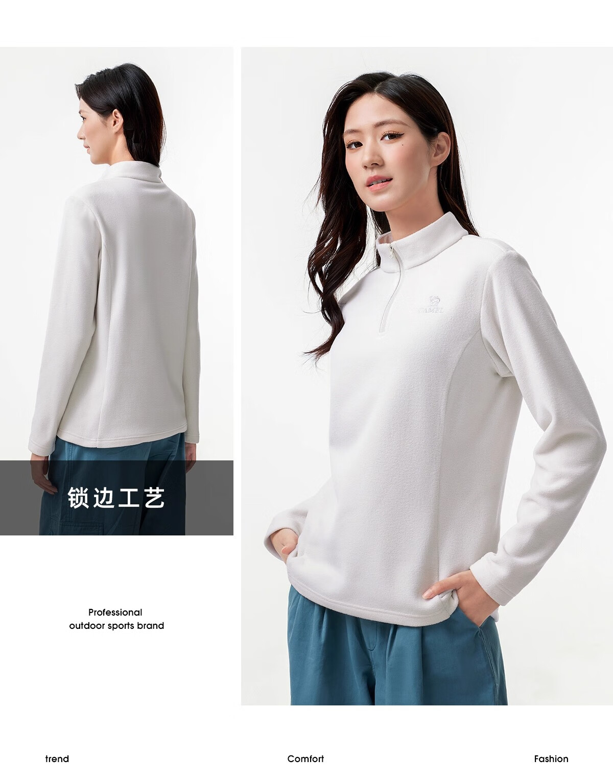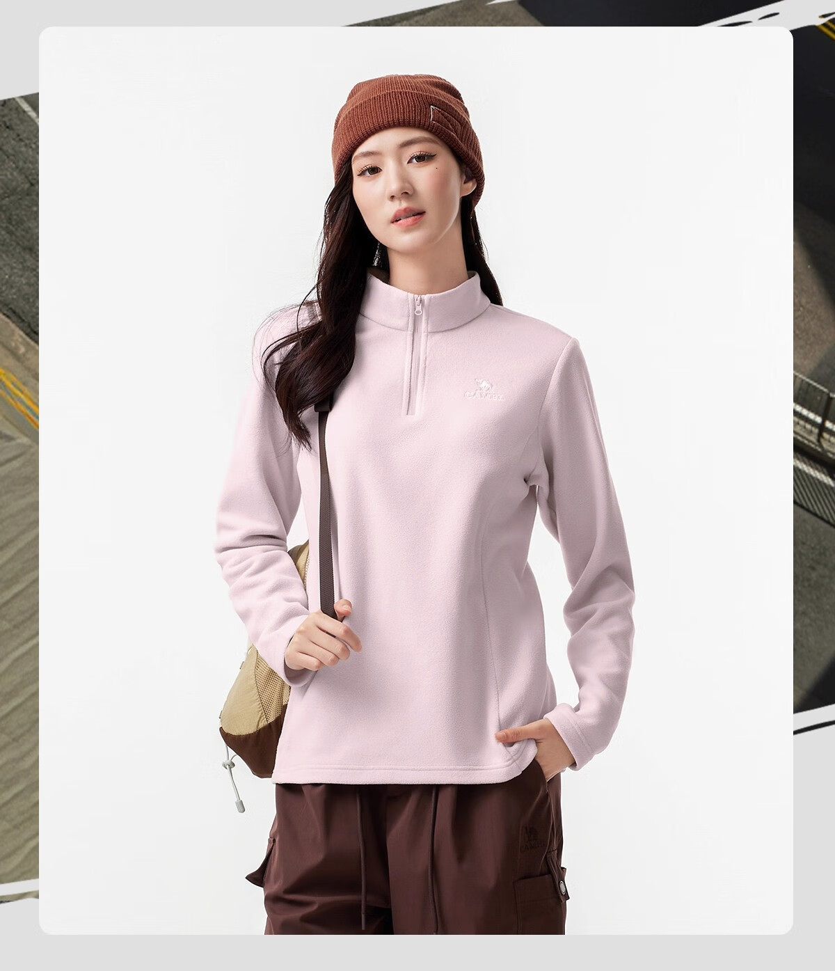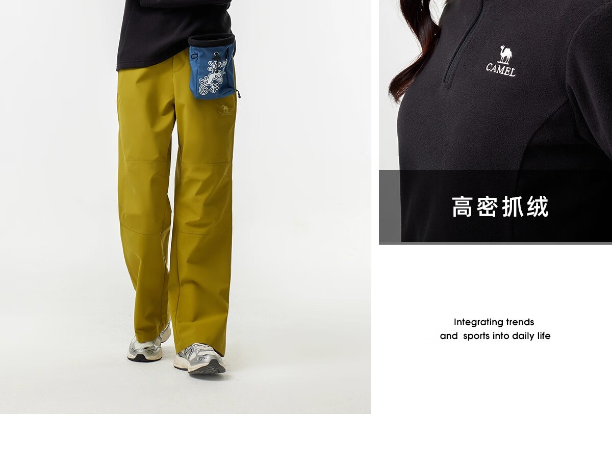 Camel outdoor fleece jacket for women, stand collar, windproof, heated, warm, anti-static polar fleece jacket for men