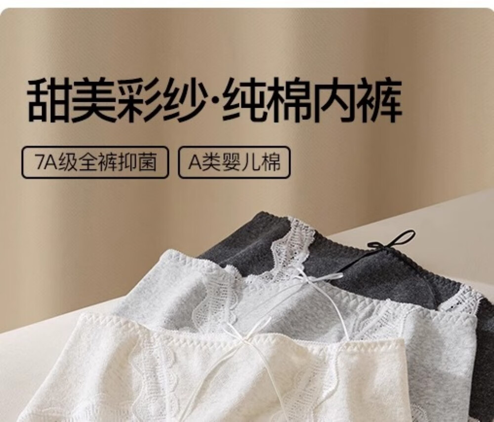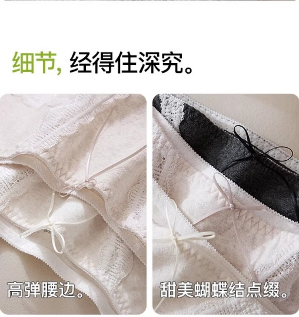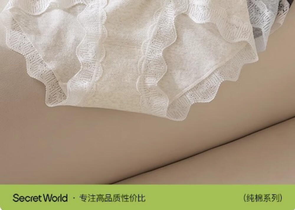 SecretWorld Panties Women's 100% Cotton 7A Antibacterial Cotton Category A Mid-Rise Breathable Pure Desire Lace Girls Briefs