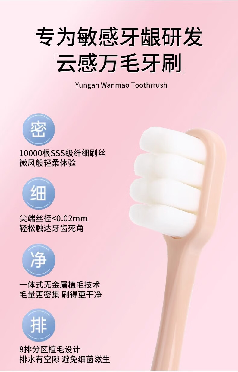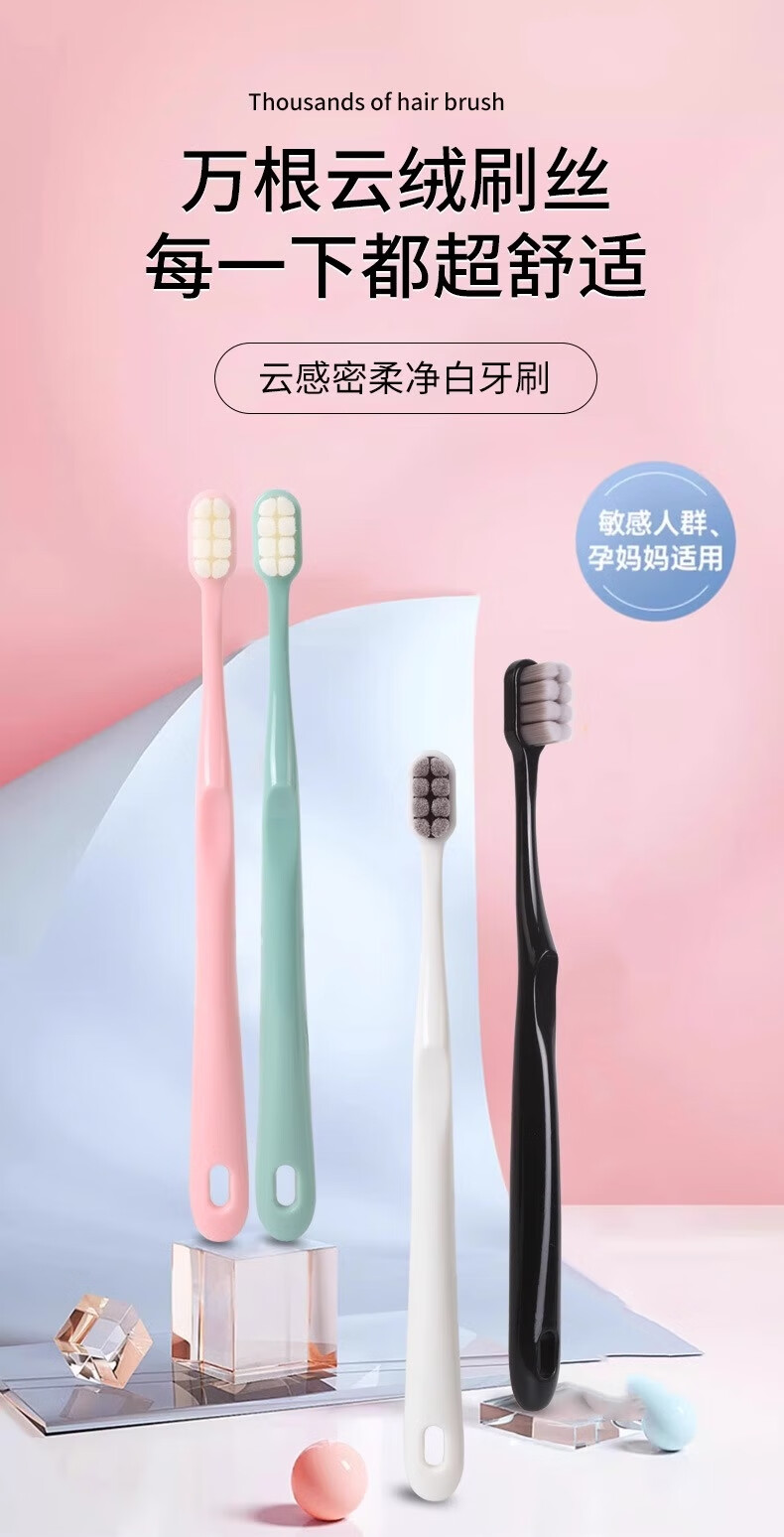 OWI adult soft-bristle toothbrush with ten thousand hairs and small head for couples, pregnant women and postpartum women and men, ultra-soft family portable set