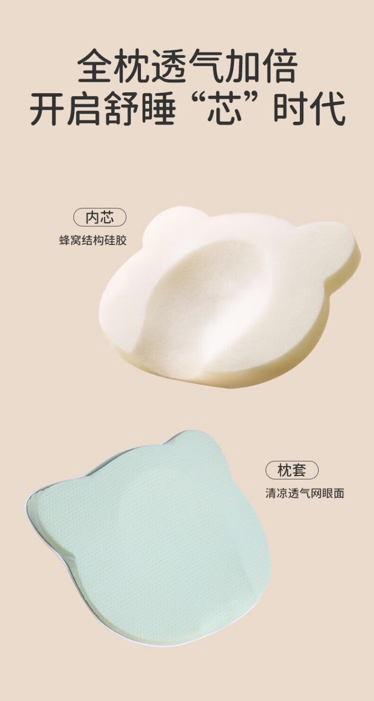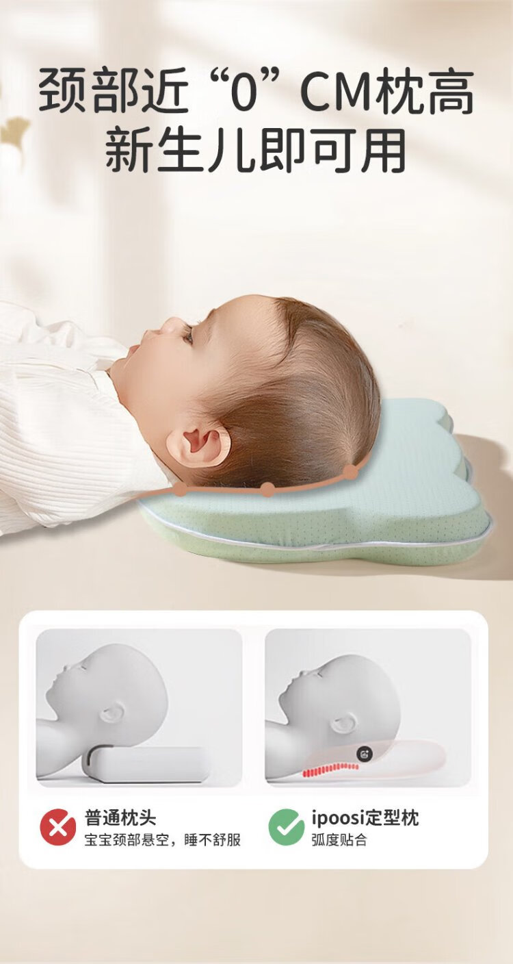 Ipoosi baby shaping pillow newborn baby 0-3-6 months and above auxiliary head tilt breathable silicone pillow for all seasons