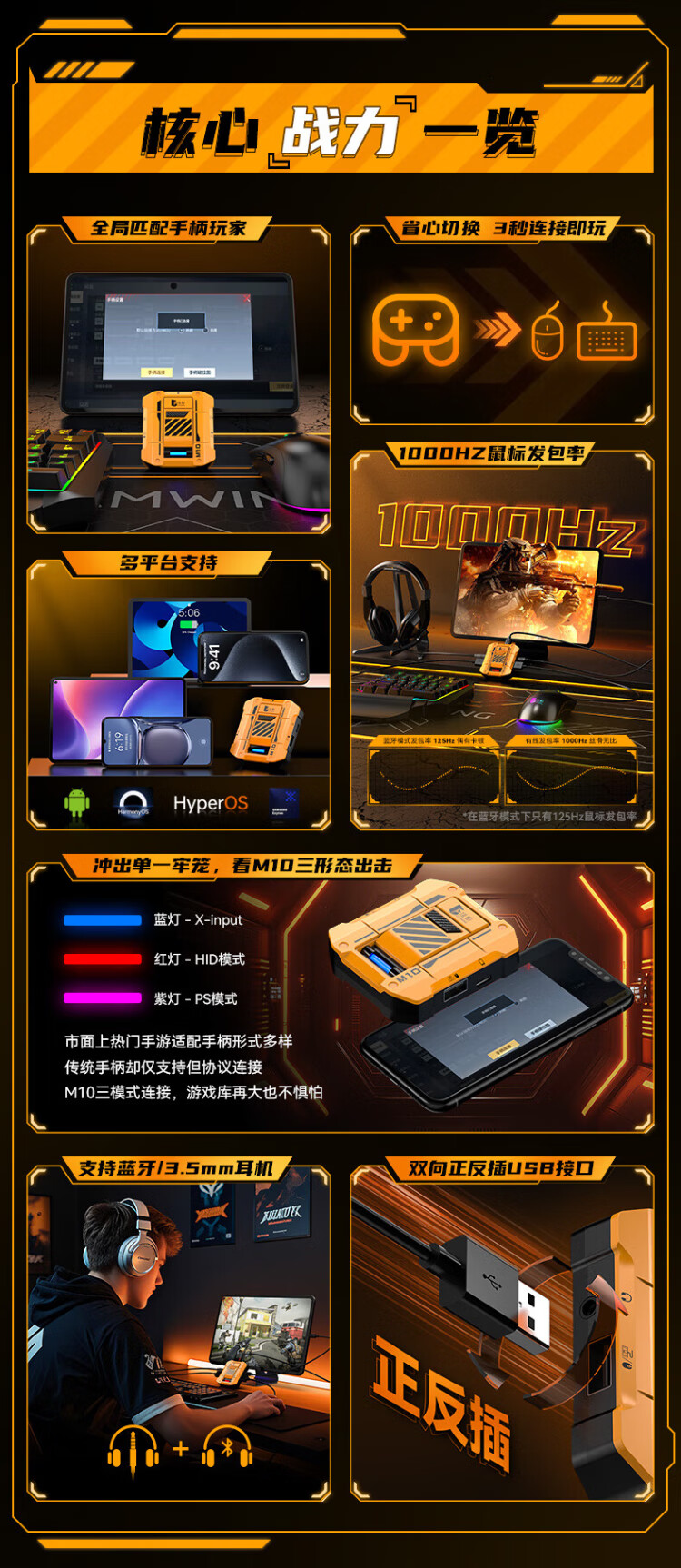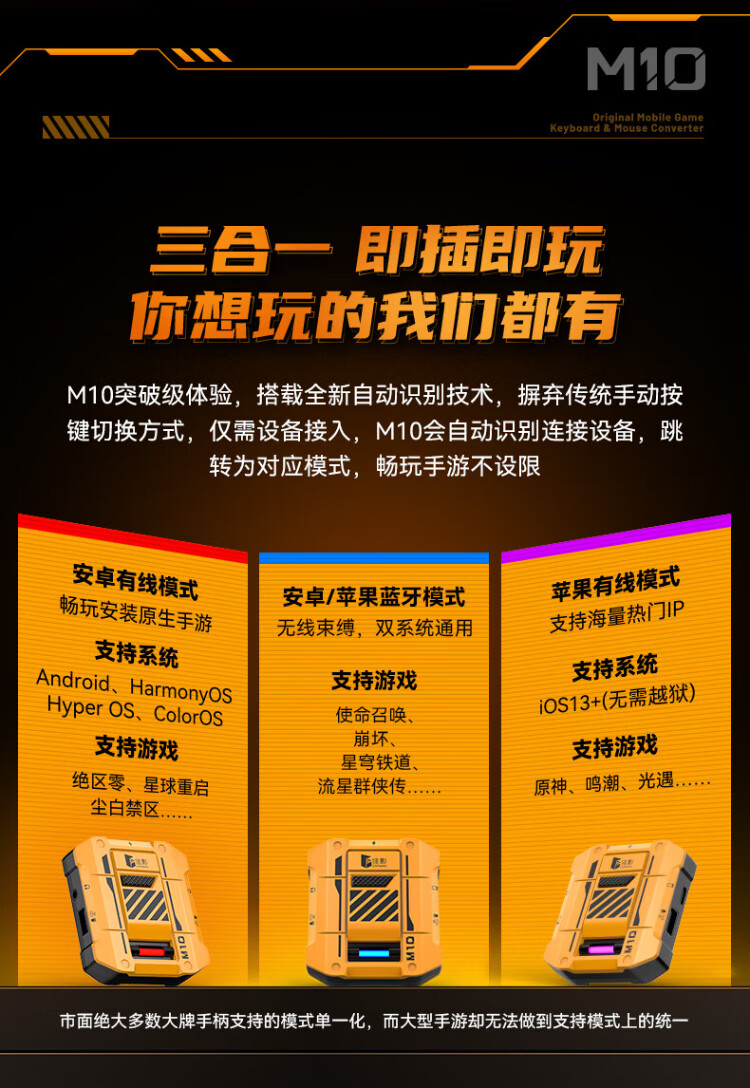 Jiaying M10 native mobile game controller keyboard and mouse converter Yanyun Sixteen-tone Genshin Impact Call of Duty Cross Fire Android IOS converter controller to keyboard and mouse supports Bluetooth wired