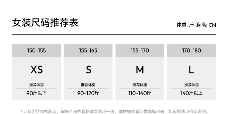 China (cm) 160-165/84-86 165-170 / 88-90 167-172 / 92-96 168-173 / 98-102 170-176 / 106-110