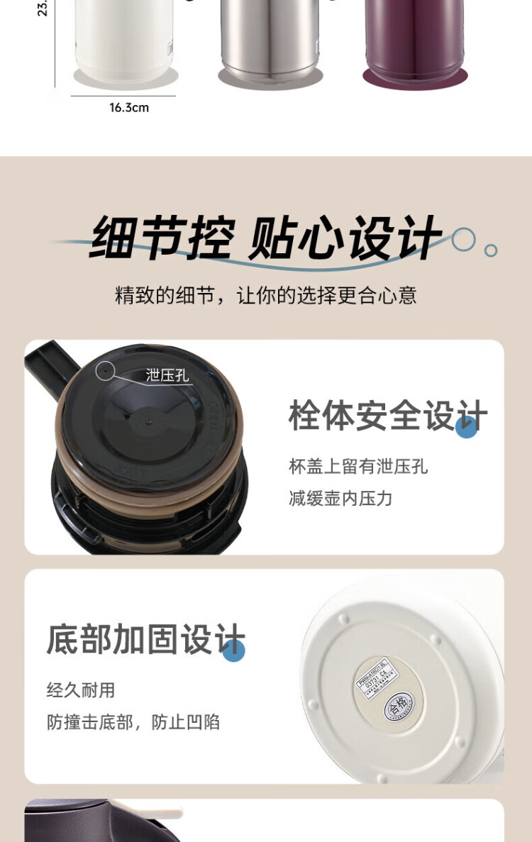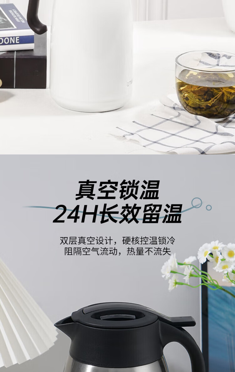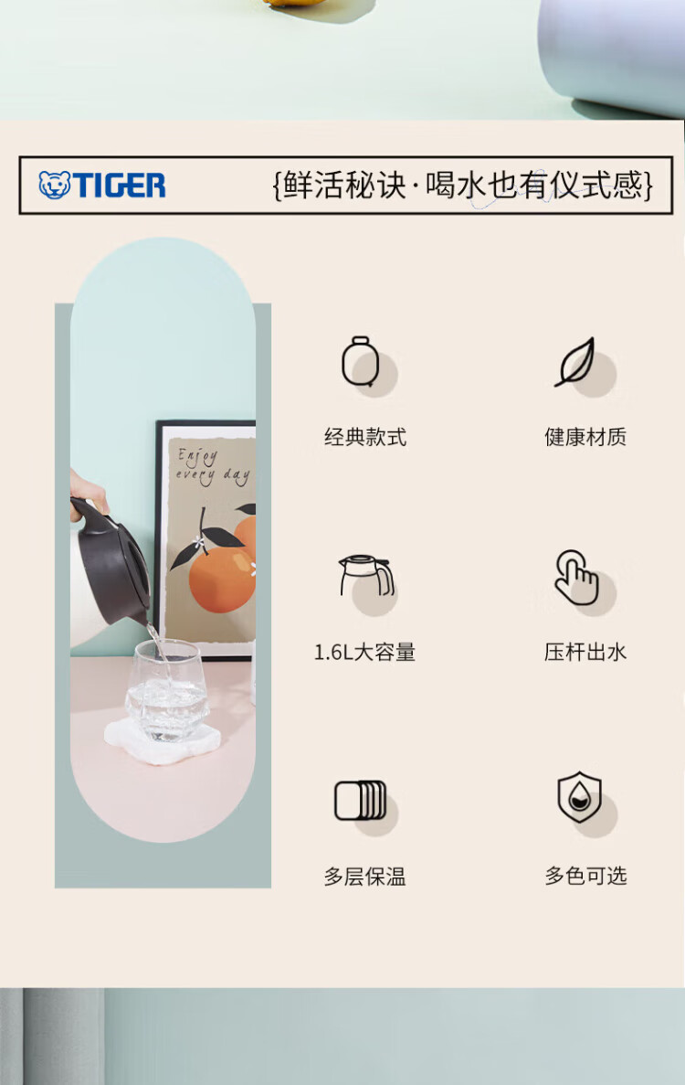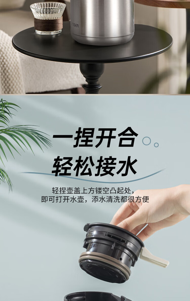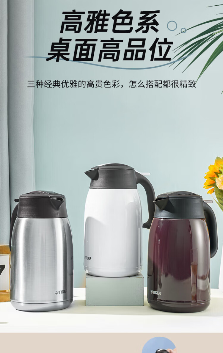 TIGER Stainless Steel Portable Thermos Vacuum Insulated Kettle PWM-A16C-CA Pearl White 1.6L