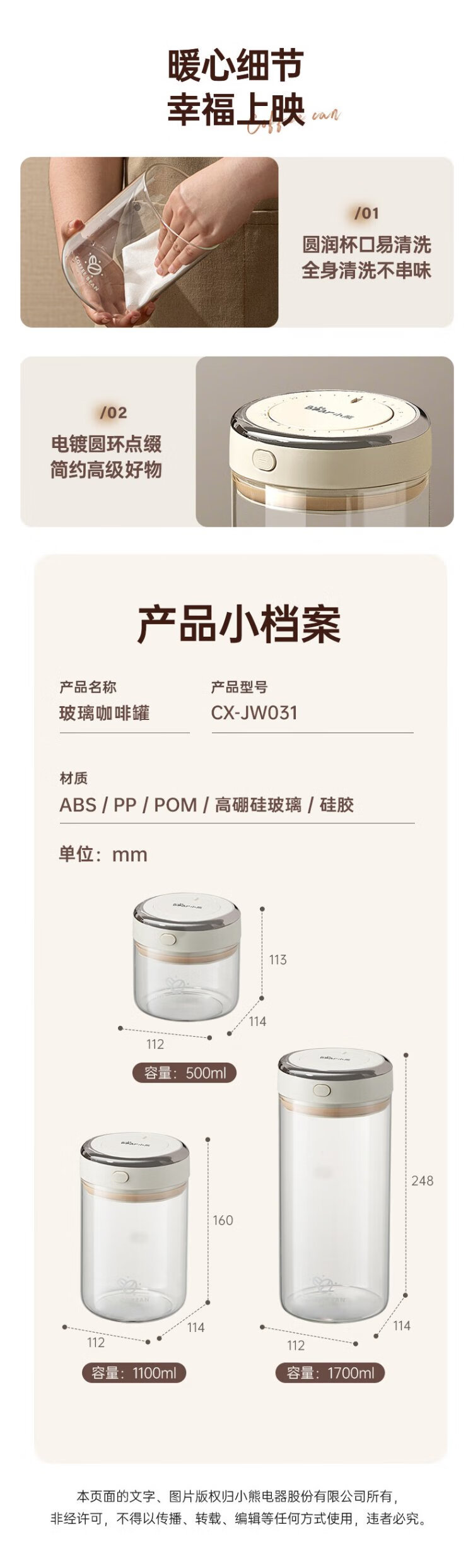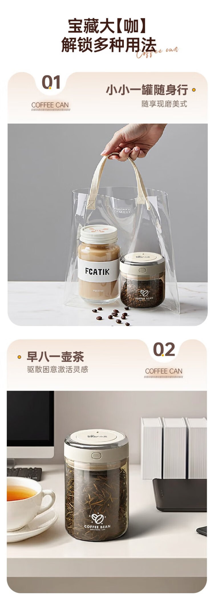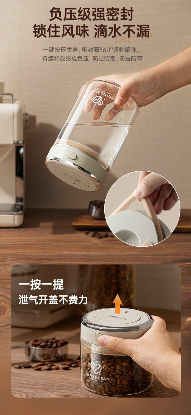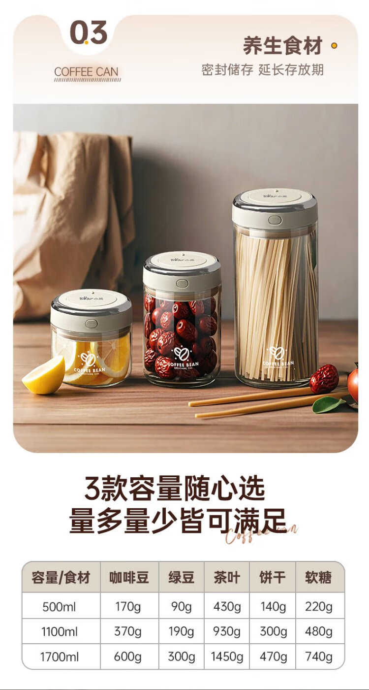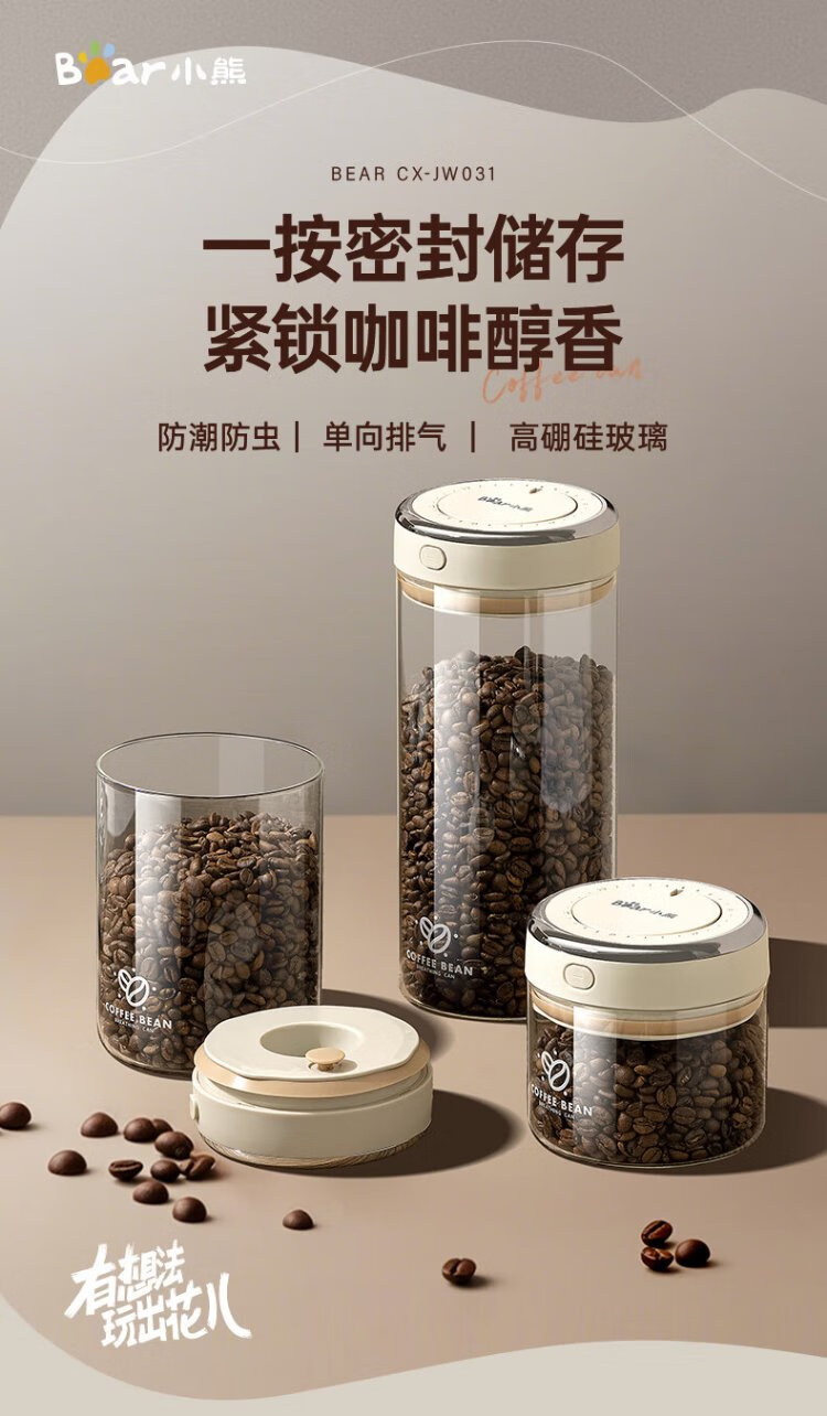 Bear Food Grade Coffee Bean Sealed Bottle Coffee Powder Portable Storage Jar 1100ml CX-JW031-P02