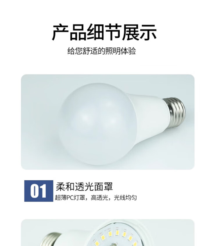 Jinggong LED light bulb energy-saving light bulb E27 large screw port high-power property factory commercial high-brightness light source 22W white light