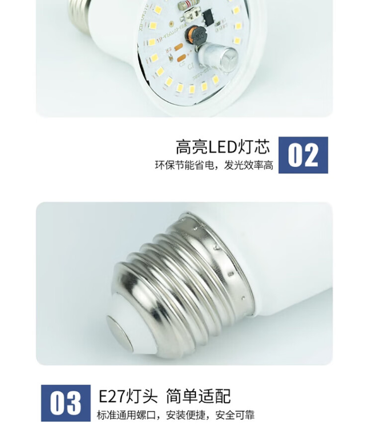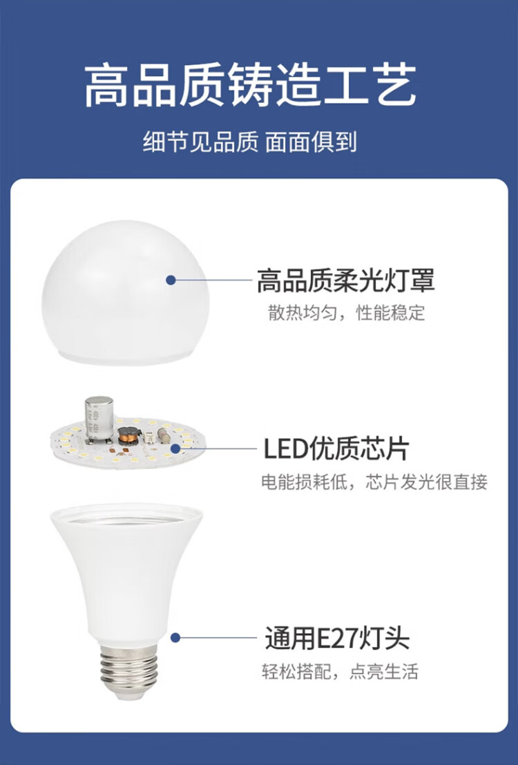 Jinggong LED light bulb energy-saving light bulb E27 large screw port high-power property factory commercial high-brightness light source 15W white light