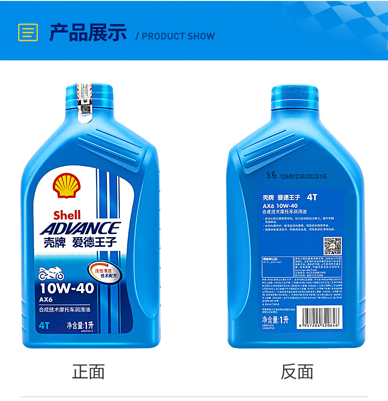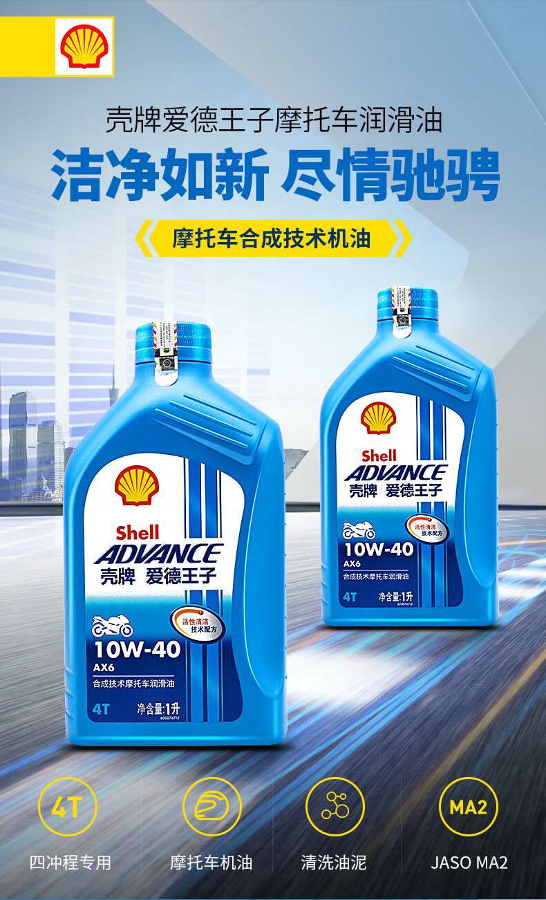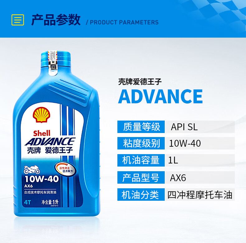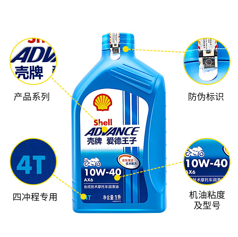 Advance Shell Motorcycle Oil Scooter Universal Lubricant SL Grade AX6-10W-40 1L