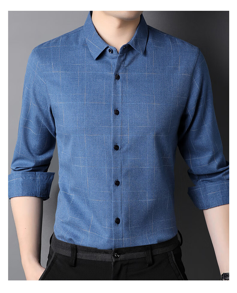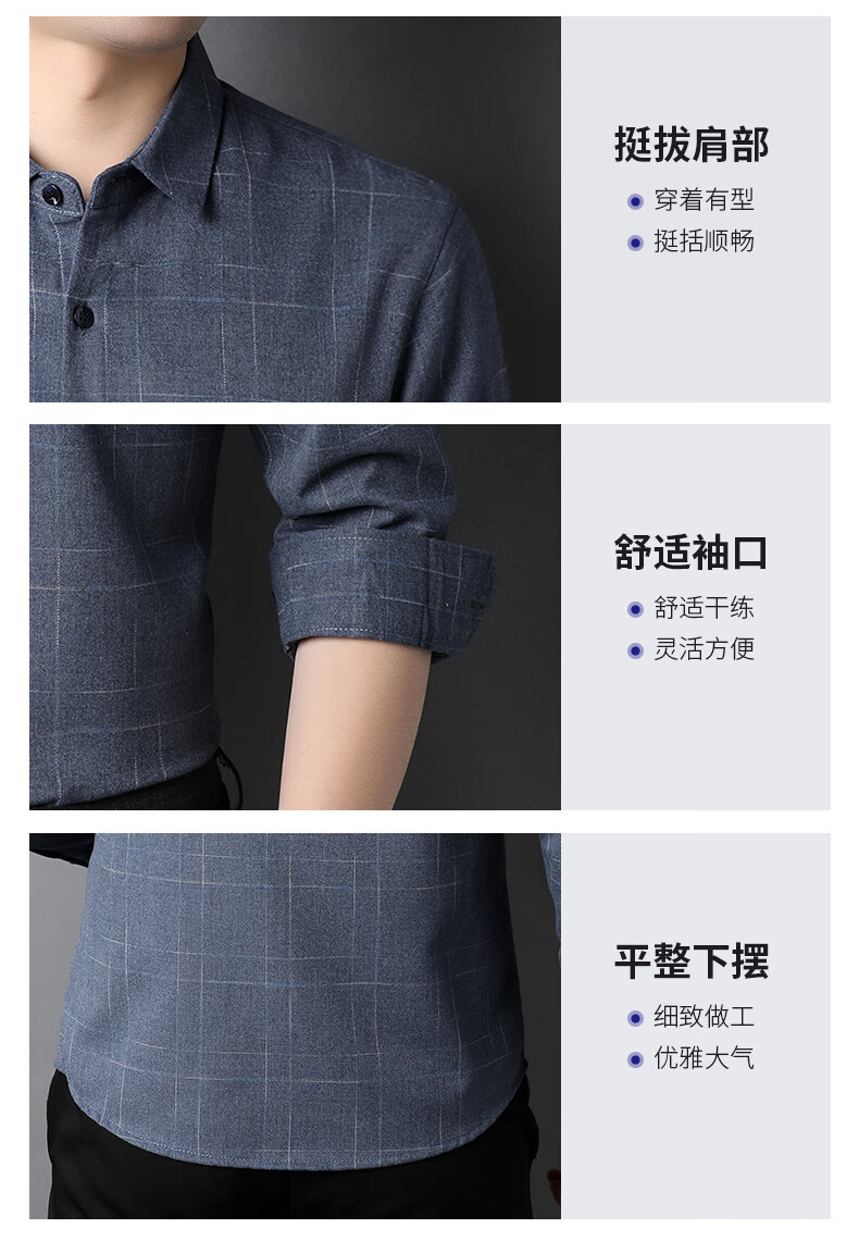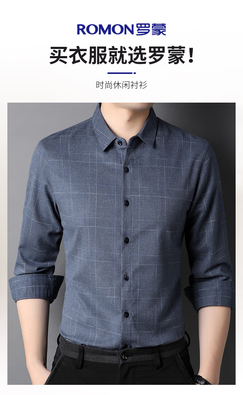 ROMON long-sleeved shirt men's autumn and winter business shirt men's striped casual gentleman jacket men's gray XL
