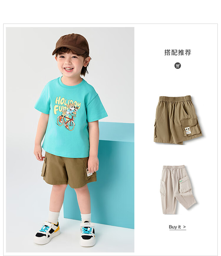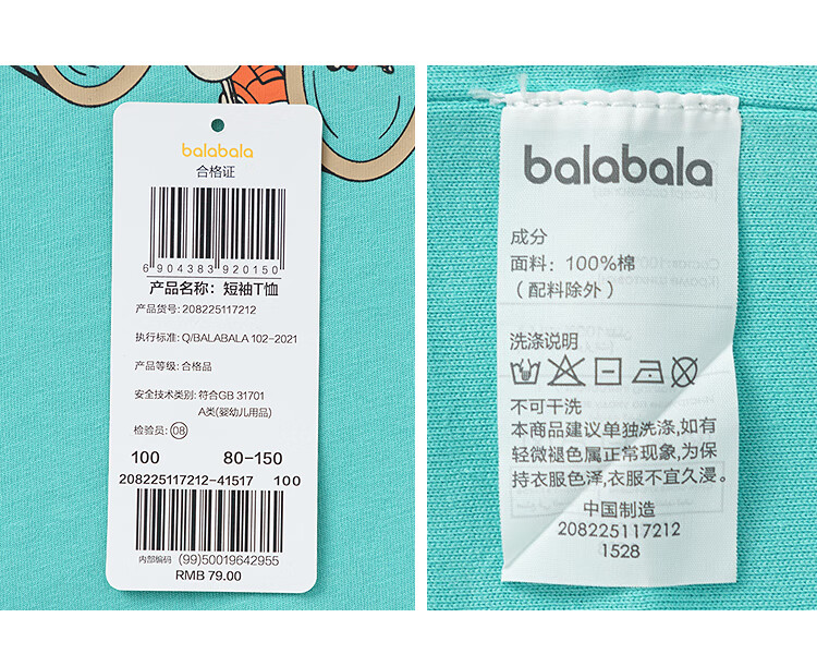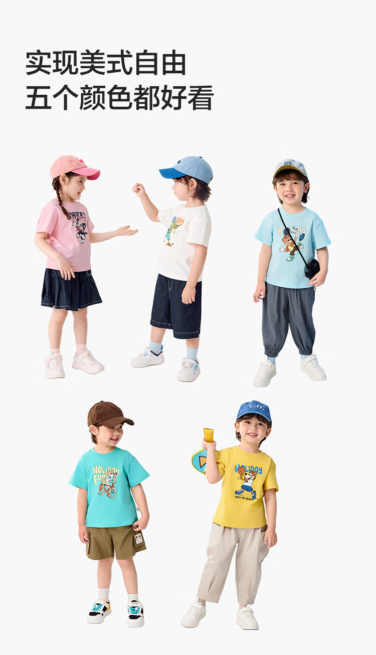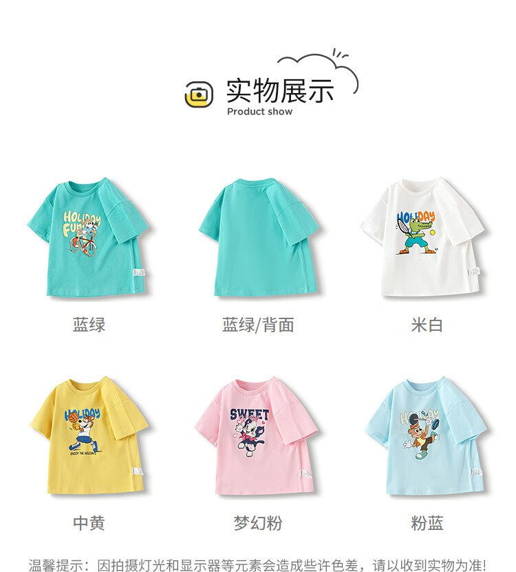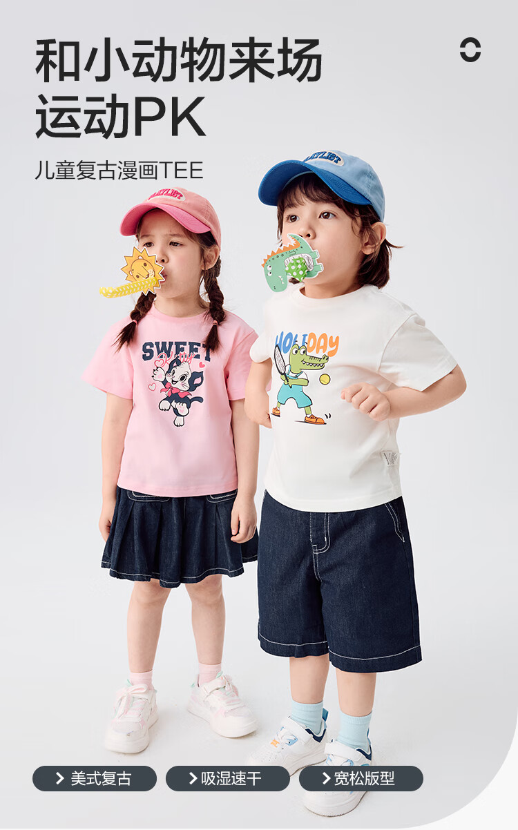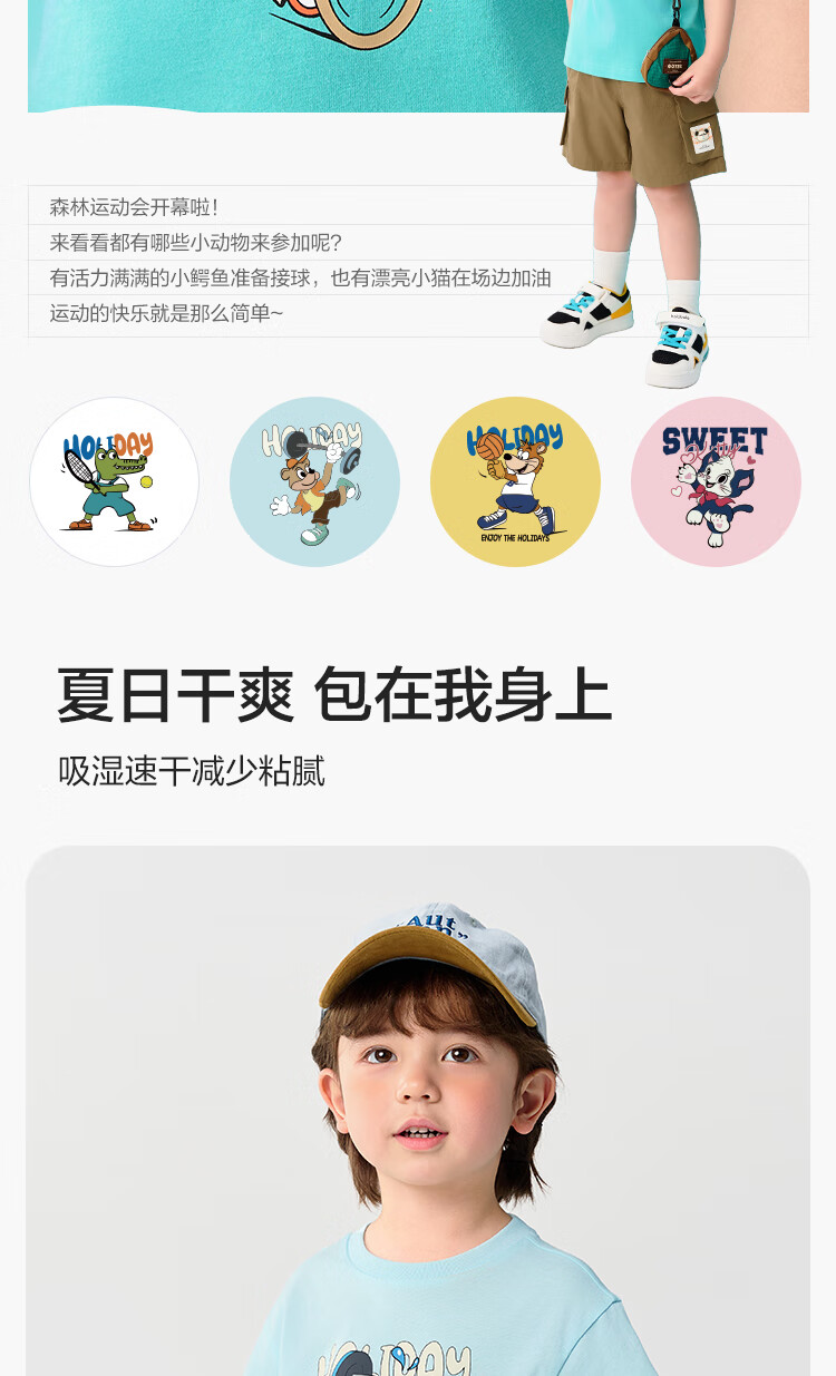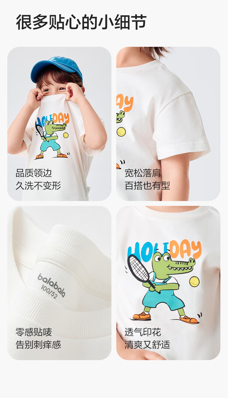 Balabala children's clothing children's t-shirt short-sleeved tops girls boys 2025 summer clothes moisture-absorbent and quick-drying 208225117212