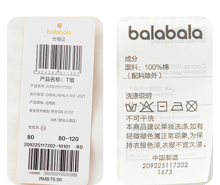 Balabala baby t-shirt baby tops girls clothes boys short sleeves 2025 summer clothes sweet and cute 209225117202