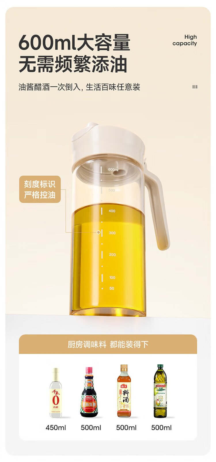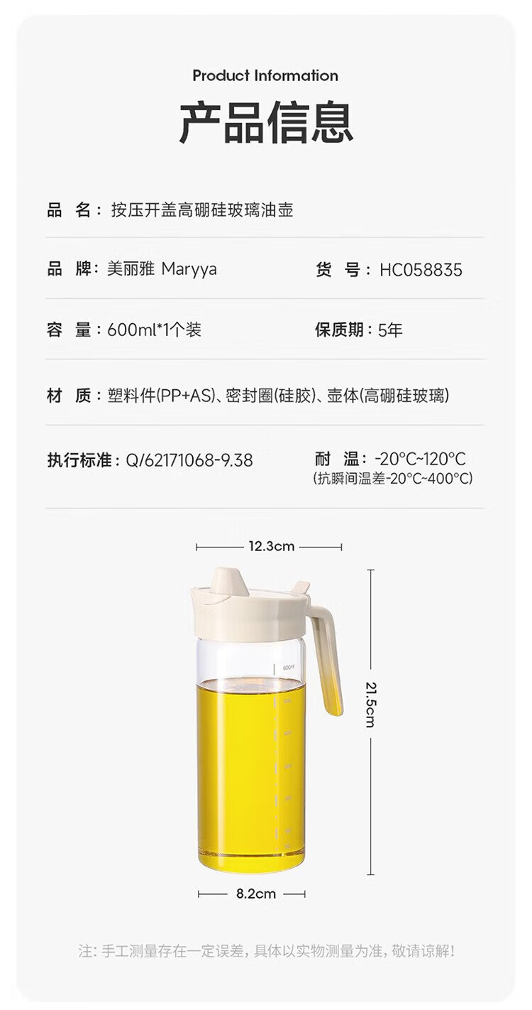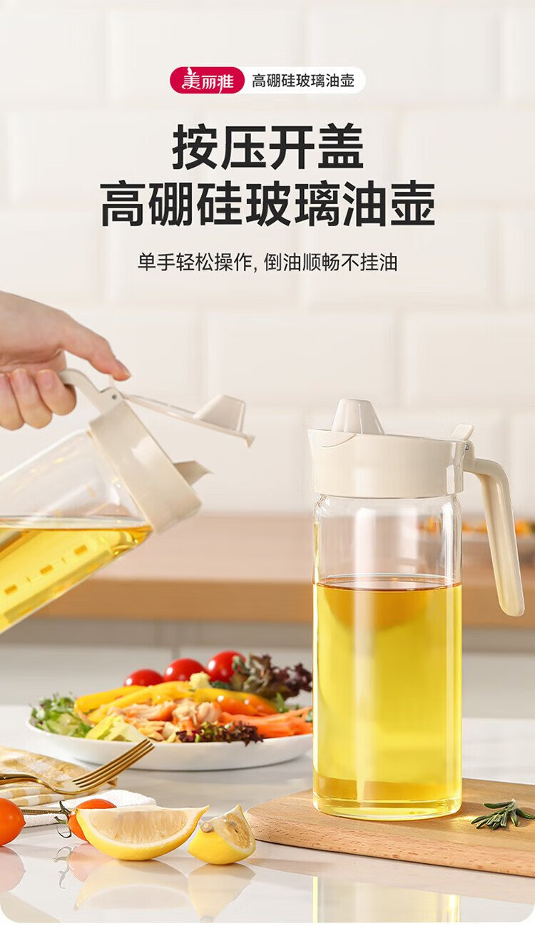 Meliya glass oil pot for kitchen household food-grade anti-leak spout without oil hanging high borosilicate oil pouring bottle large capacity
