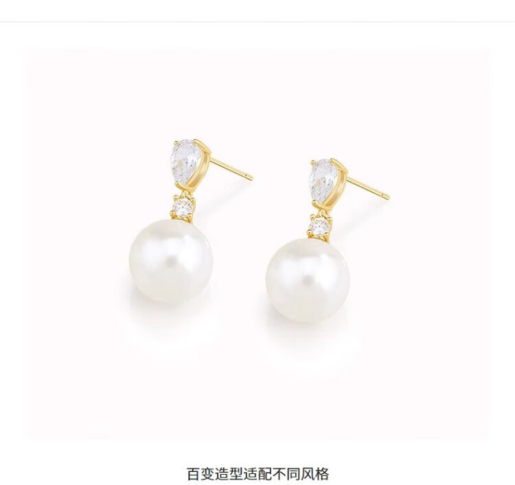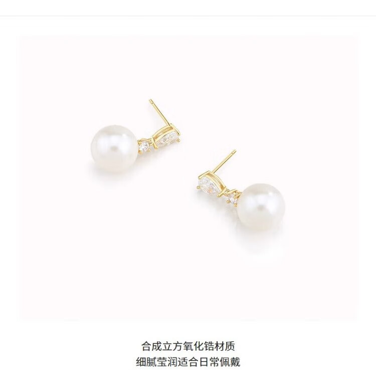 AJIDOU Ajidou earrings birthday gift imitation pearl pendant zircon earrings for girlfriend and wife white + gold