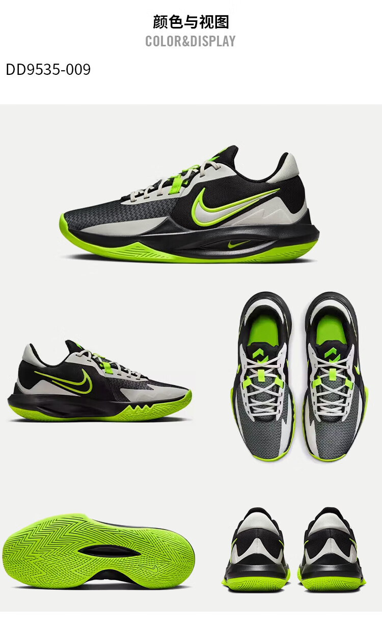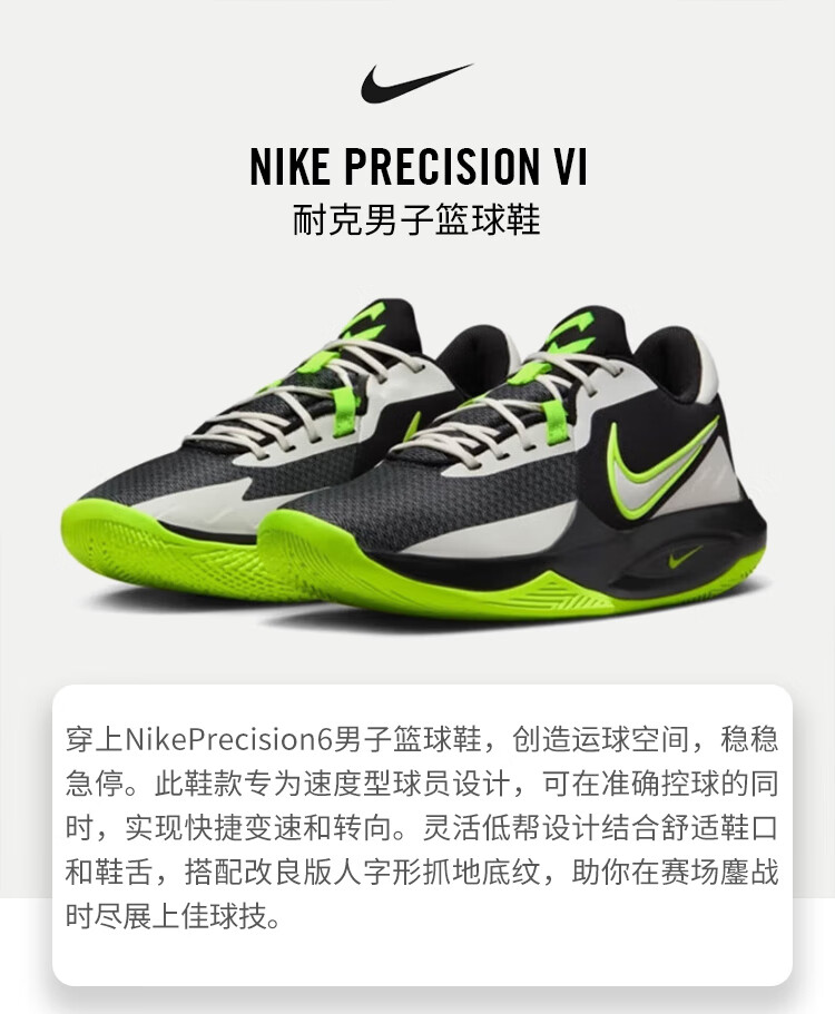 Nike NIKE Men's Sports Shoes NIKE PRECISION VI Basketball Shoes DD9535-009 Black Green 43