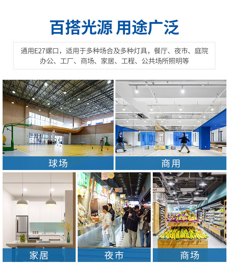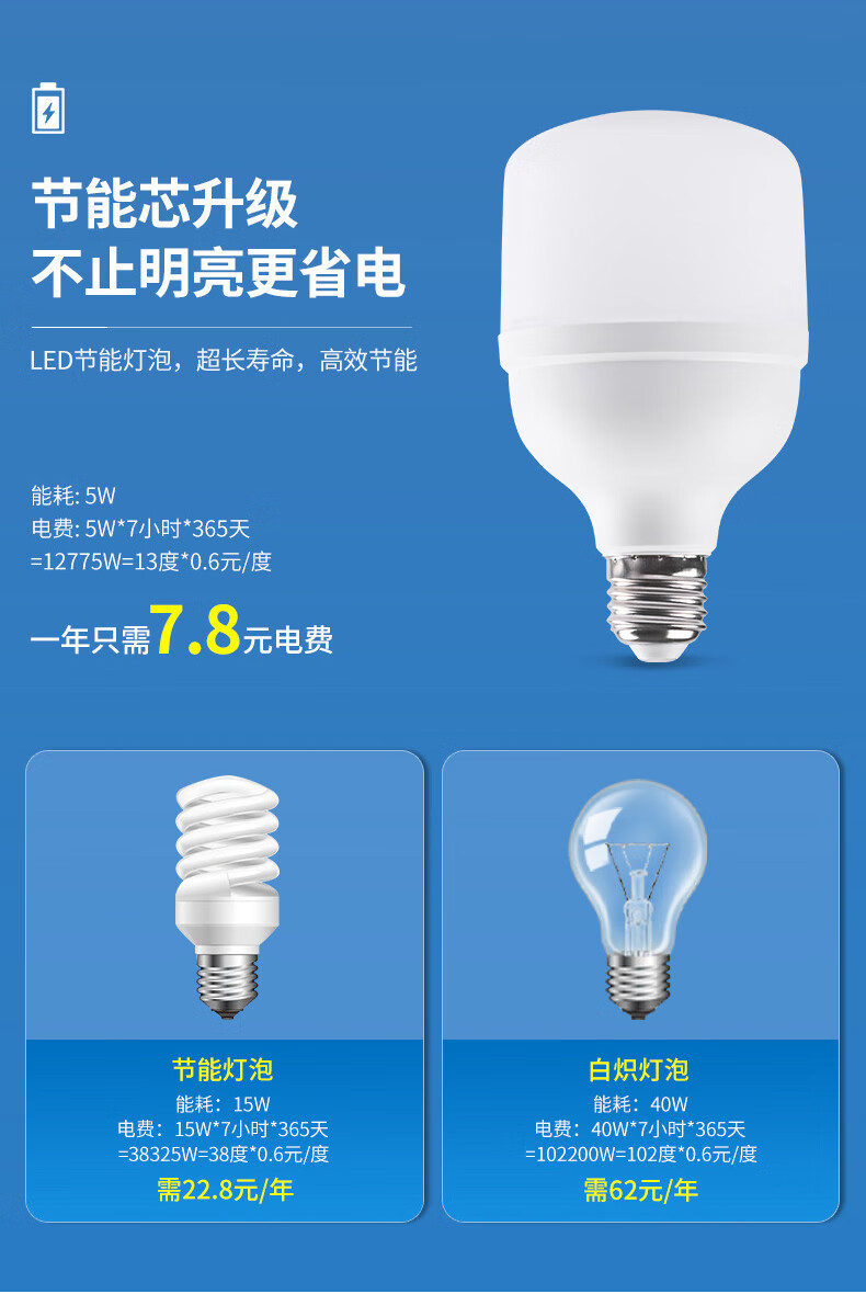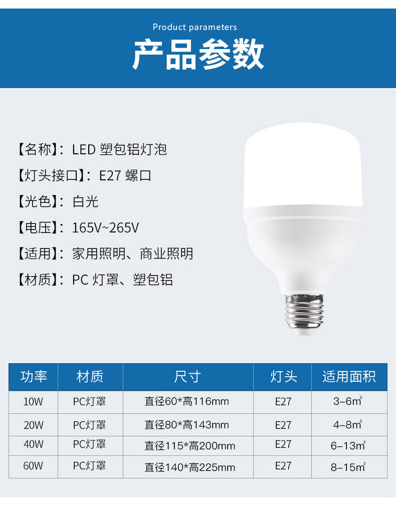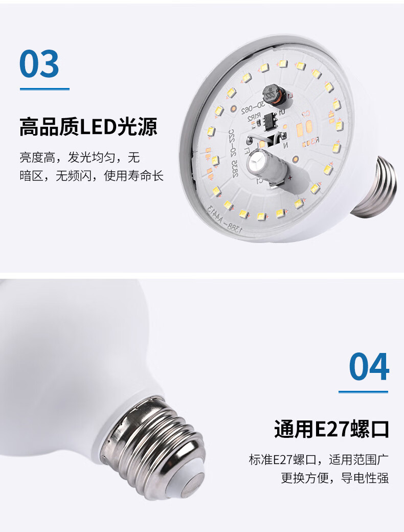 Jinggong LED high-power light bulb E27 large screw socket high-power property factory commercial high-brightness light source 20W white light