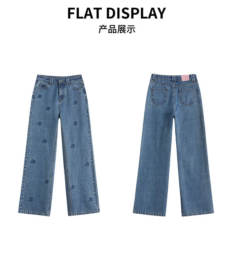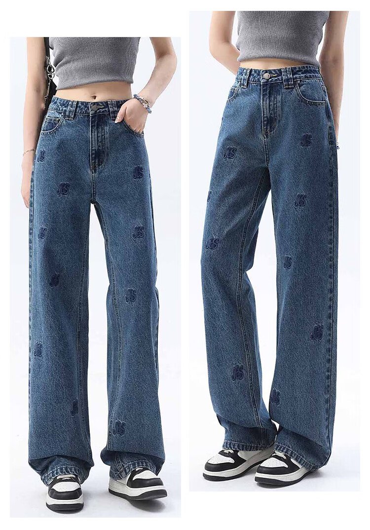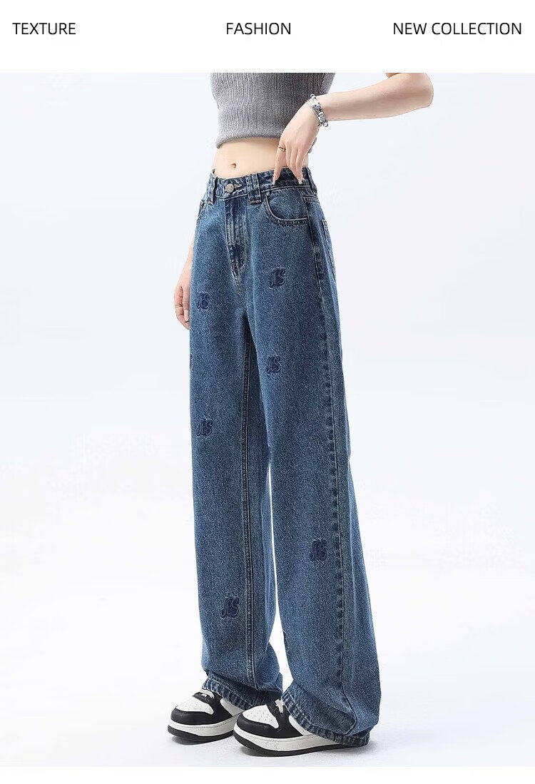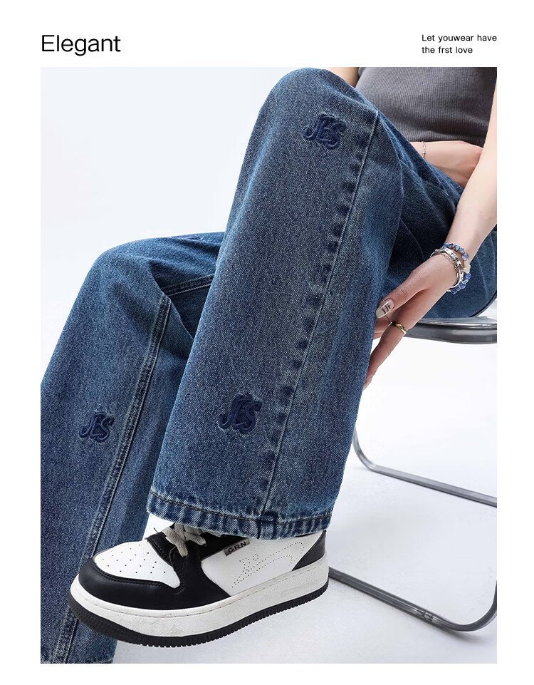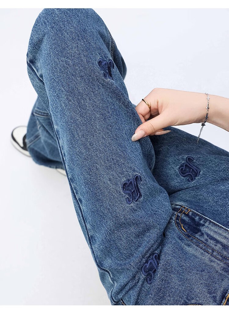 Izzue it embroidery design jeans for women 2025 new autumn fashion brand loose straight straight floor-length mopping long pants for women