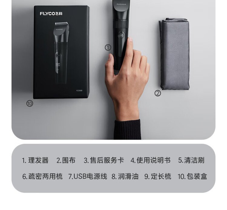 FLYCO Electric Hair Clipper FC5908 Professional Intelligent Electric Clipper for Adults and Children Home Hair Clipper Hair Clipper with Hair Cutting Tools + Double Steel Scissors