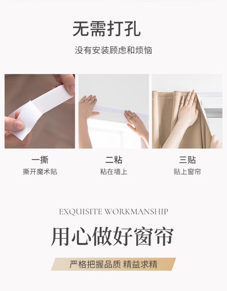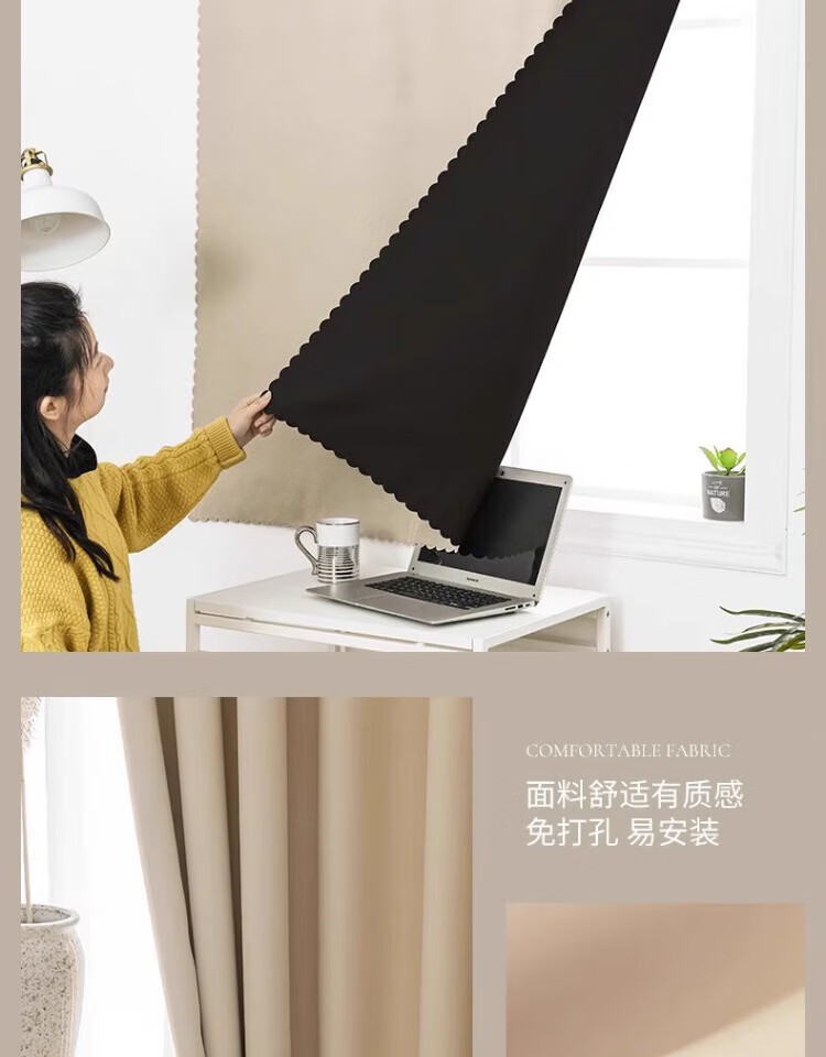 Jingxun Curtain Velcro Blackout Self-adhesive No-Punch Installation Blackout Cloth Sun Protection Insulation Shade 100*120cm