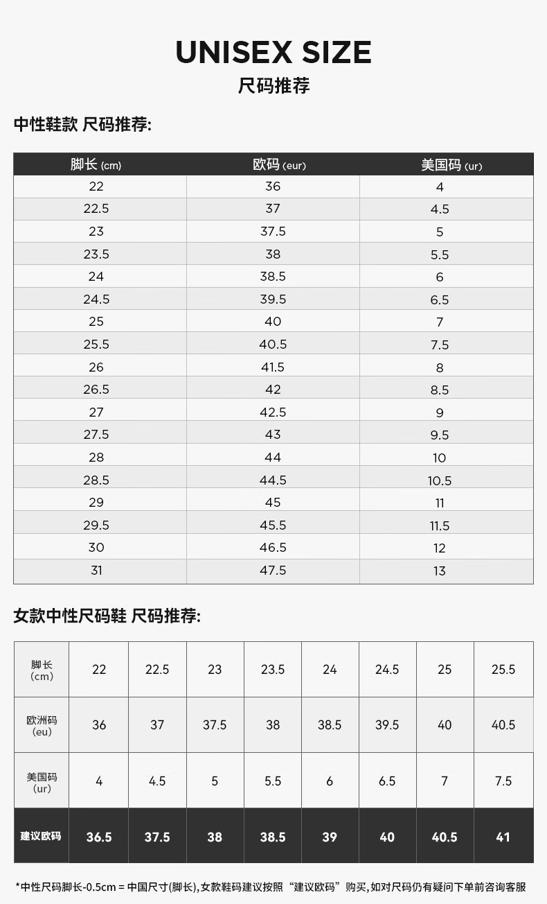 China (cm) 36 - 37 38 - 39 40 - 42 43 - 44 45 - 47