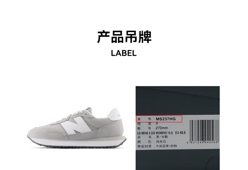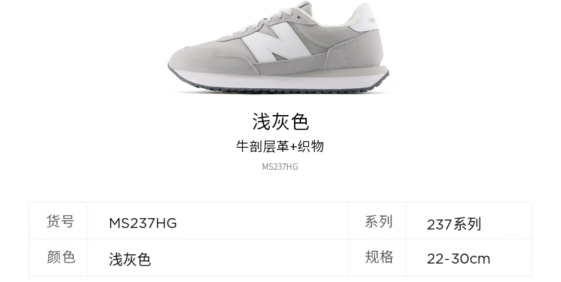 NEW BALANCE Men's and Women's Shoes Retro Versatile Lightweight Sports and Casual Shoes MS237HG 43