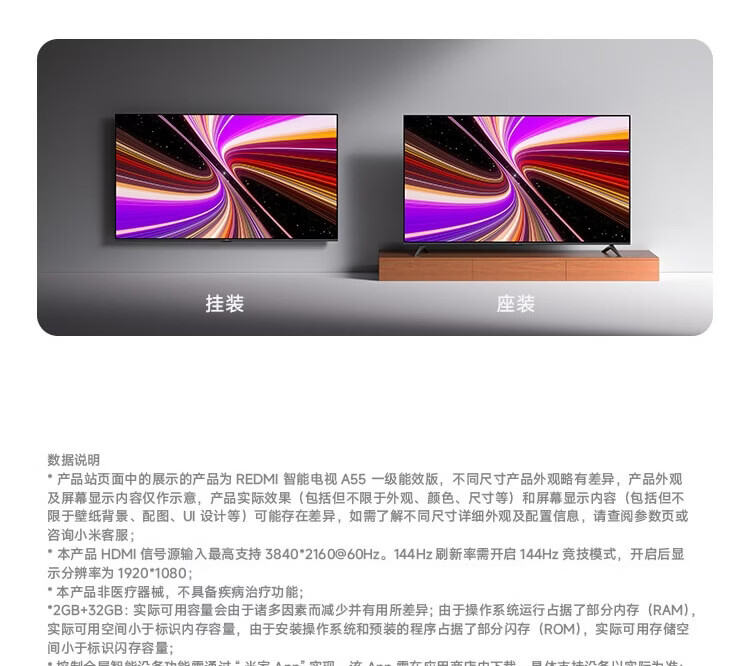 Xiaomi (MI) REDMI Smart TV A55 55-inch 144Hz High Flash 2GB+32GB Home Appliances National Subsidy L55RB-RAE