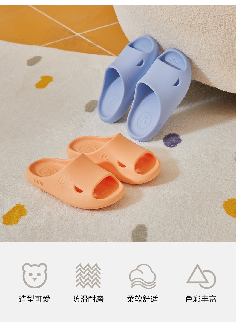 Puxi Little Shark Soft Bottom Children's Sandals for Boys and Baby Bath Non-Slip Home Indoor Slippers for Girls Force Blue