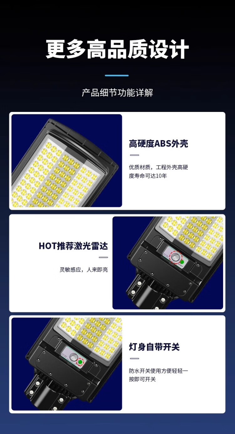 Deyan Solar Lighting Outdoor Courtyard Super Bright LED Street Light High Power Waterproof Human Body Radar Induction Lighting Integrated Curved Street Light