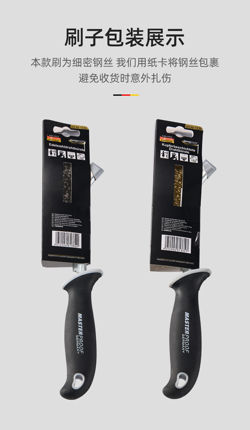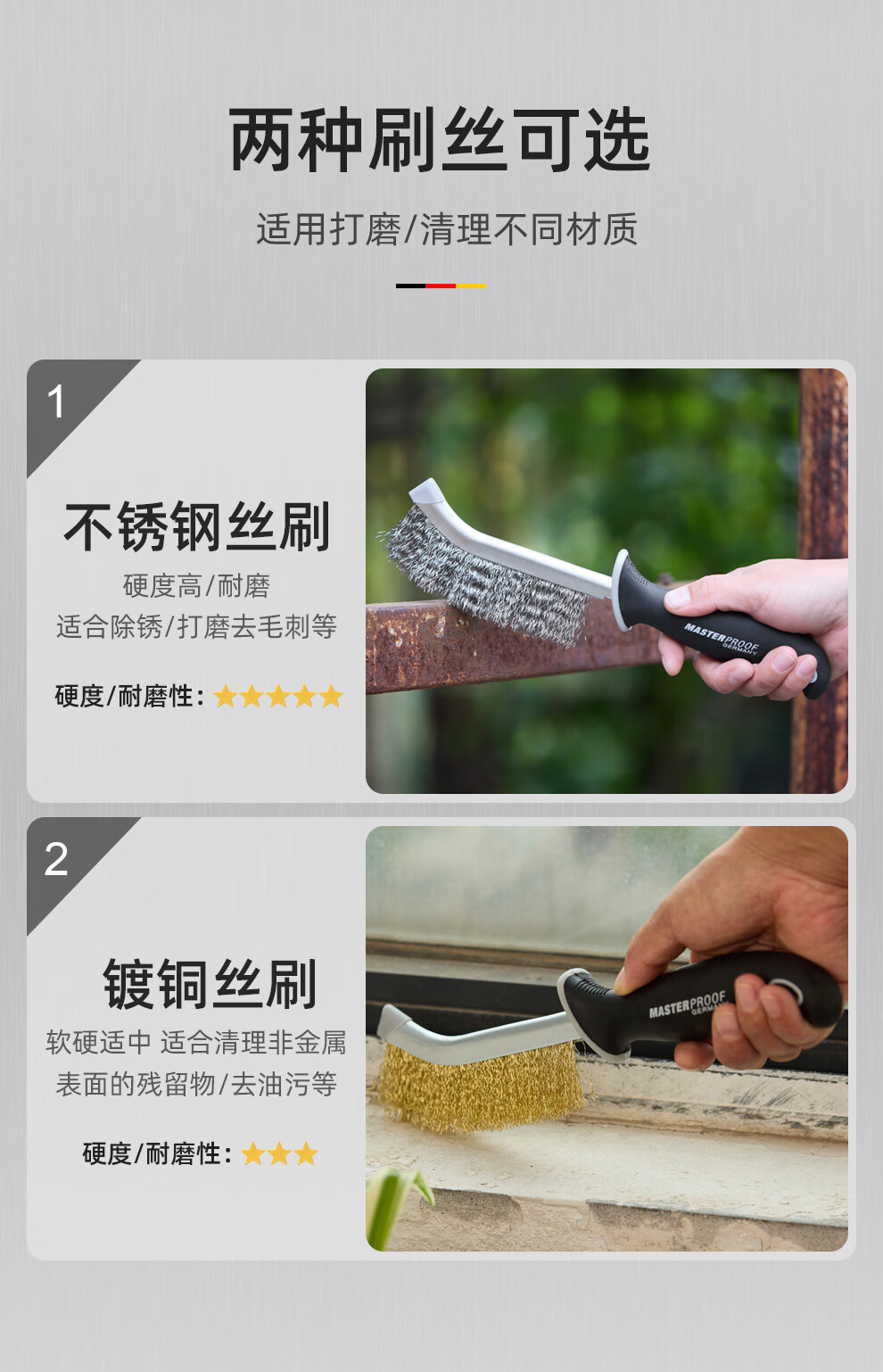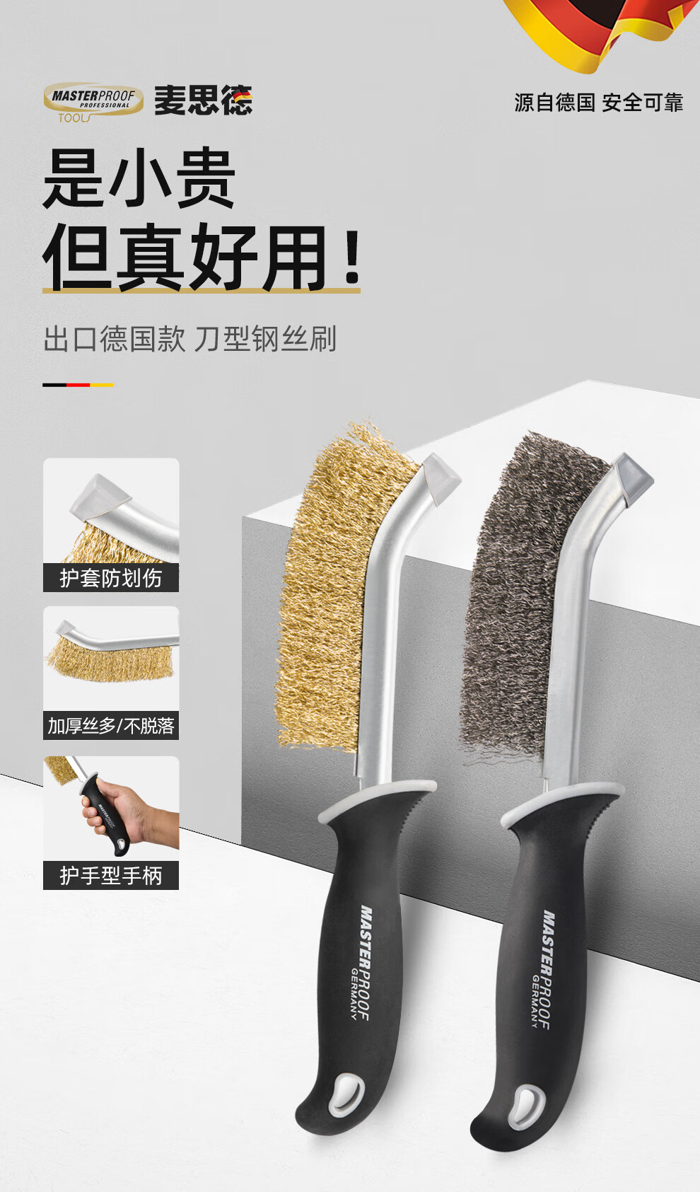 MASTERPROOF knife-shaped stainless steel wire brush long-handled barbecue brush cleaning brush to clear gaps and remove rust hard-bristle iron brush cleaning brush