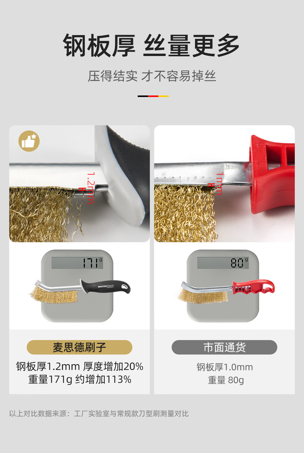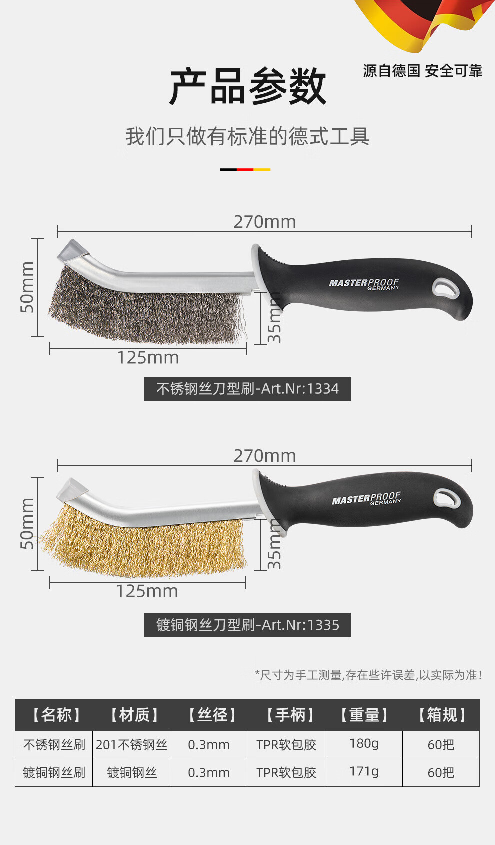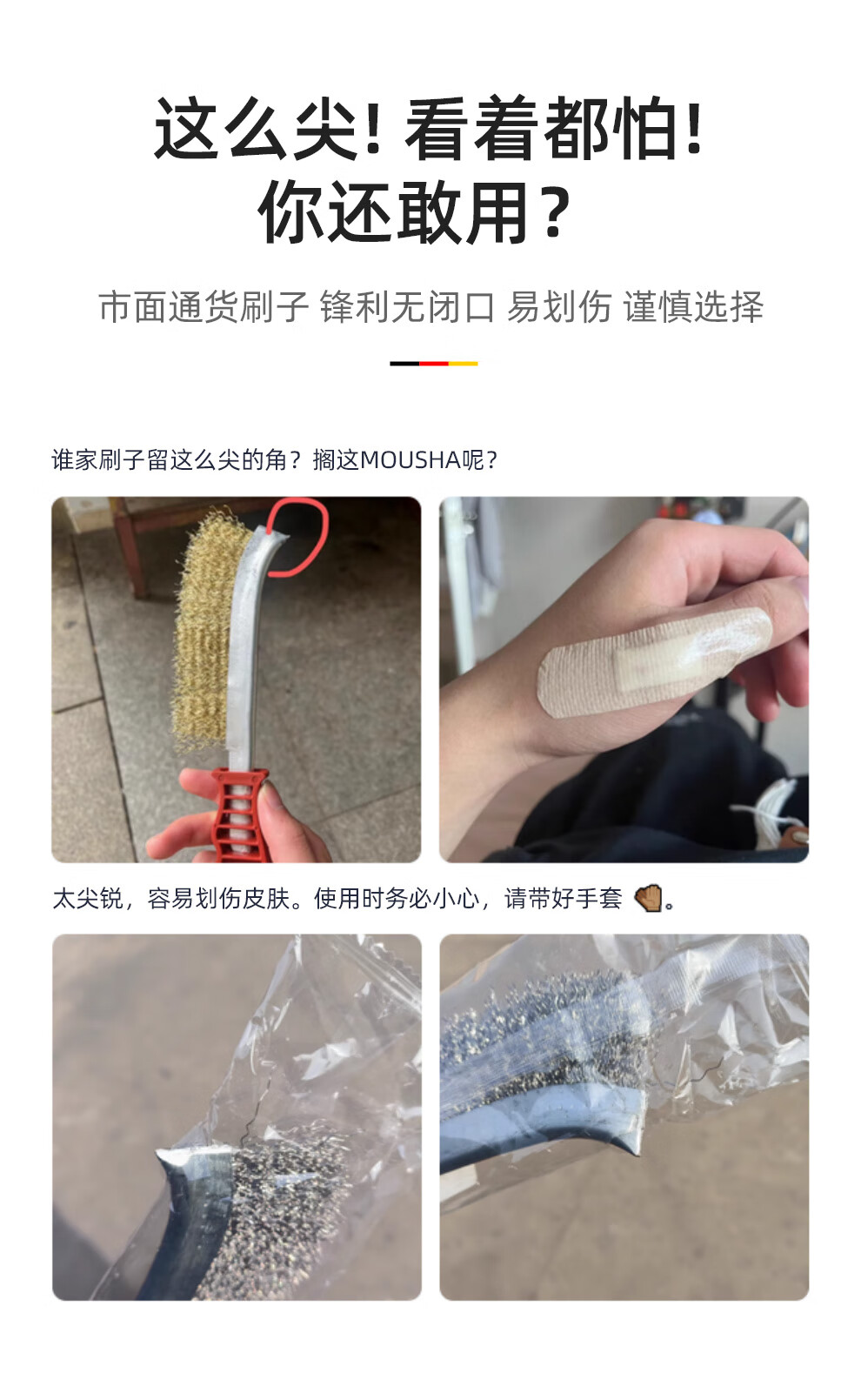 MASTERPROOF knife-shaped stainless steel wire brush long-handled barbecue brush cleaning brush to clear gaps and remove rust hard-bristle iron brush cleaning brush