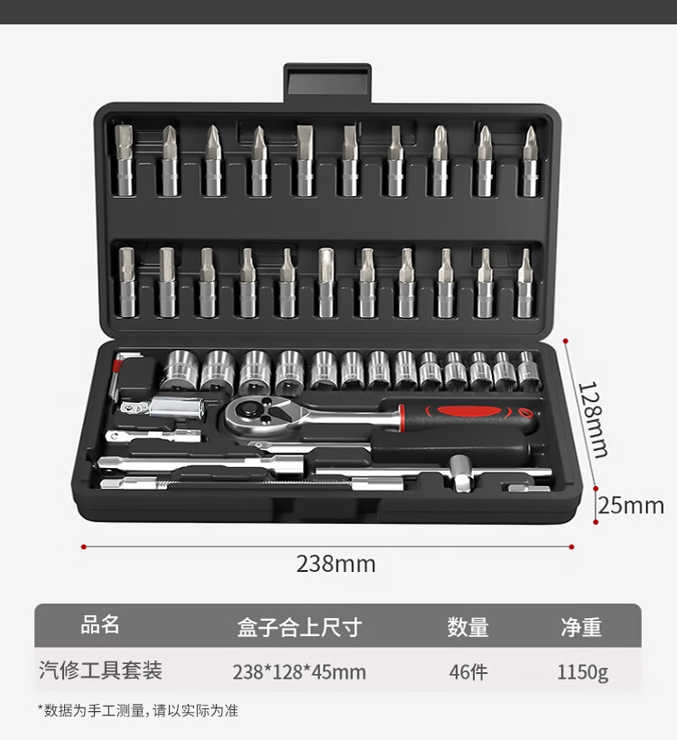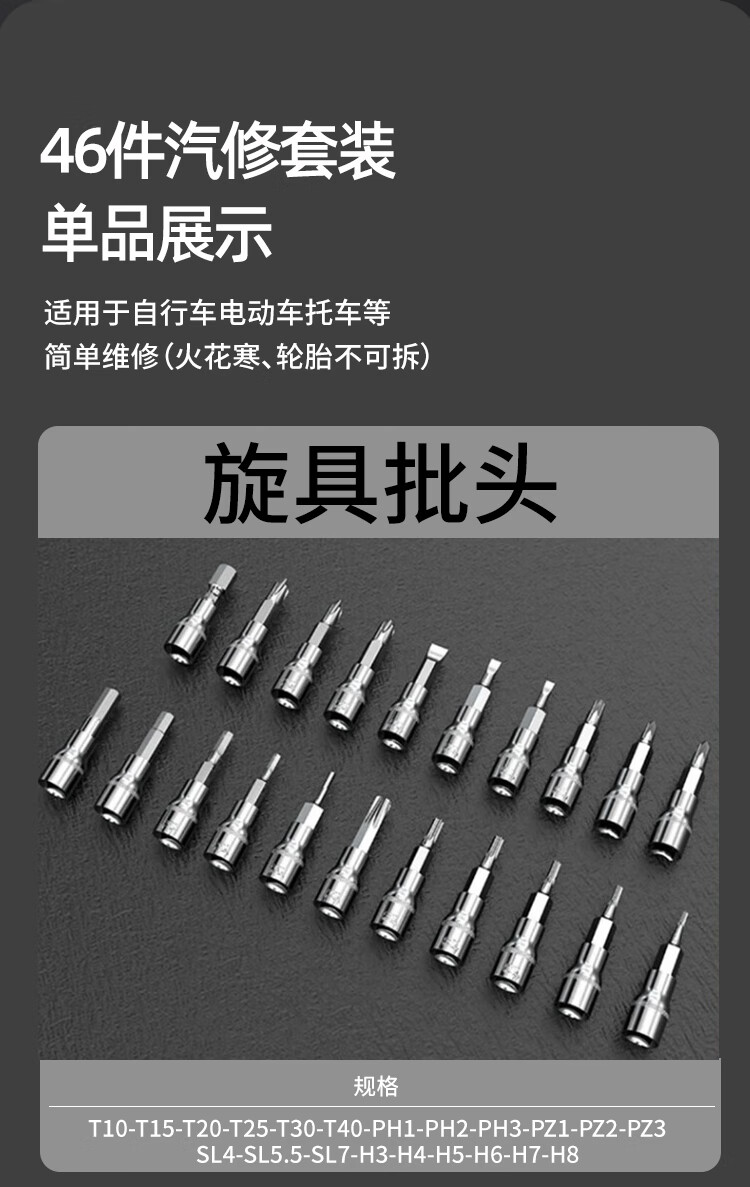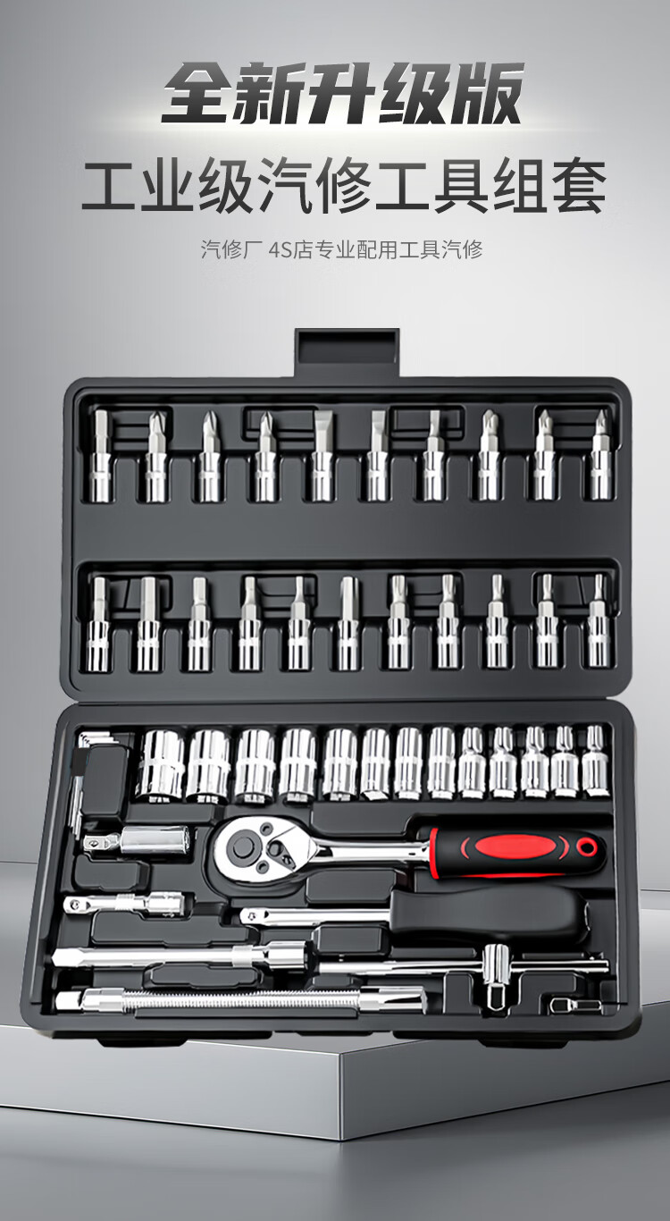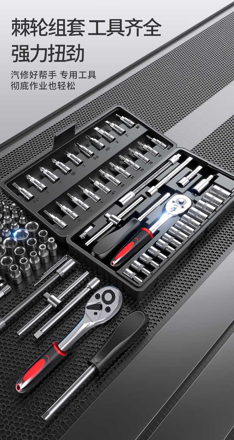 No. 1 Factory 47-piece socket wrench auto repair tool box set ratchet motorcycle repair road full set of quick torque screws