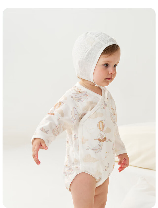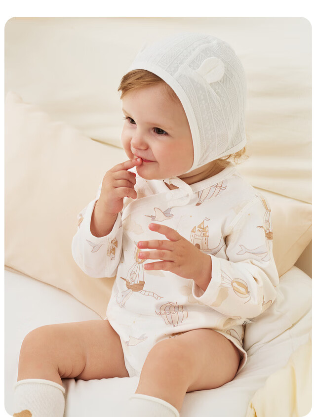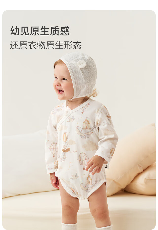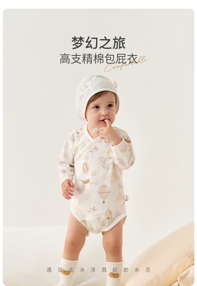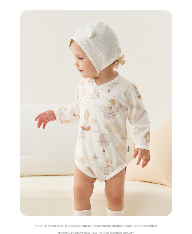 Tongtai (TONGTAI) baby wrap clothes spring and autumn pure cotton newborn clothes baby jumpsuit triangle romper gray 59cm