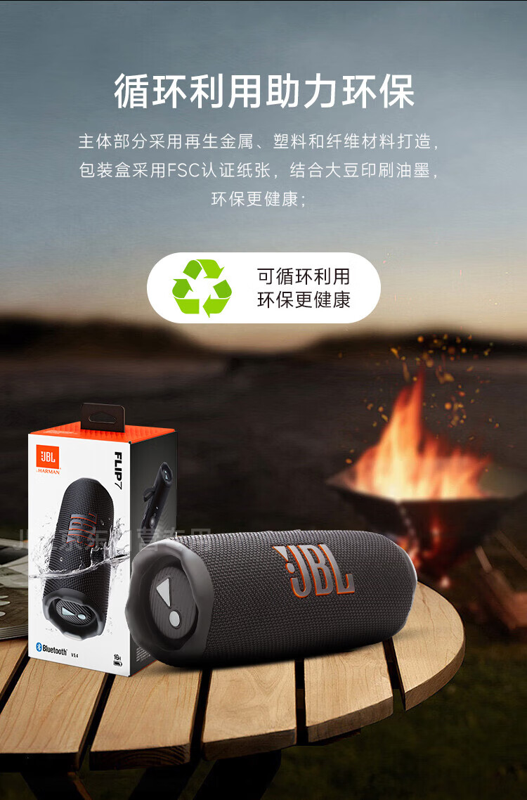 JBL FLIP7 Music Kaleidoscope Seventh Generation National Subsidy Portable Bluetooth Speaker Waterproof and Dustproof Track Speaker Double 11 Shopping Recommendation Deep Space Black