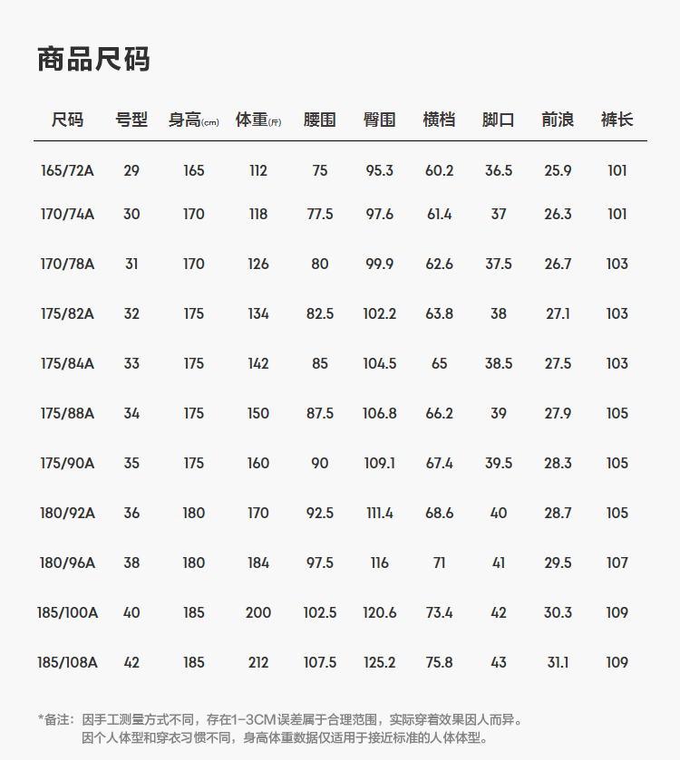 China (cm) 160-165/84-86 165-170 / 88-90 167-172 / 92-96 168-173 / 98-102 170-176 / 106-110