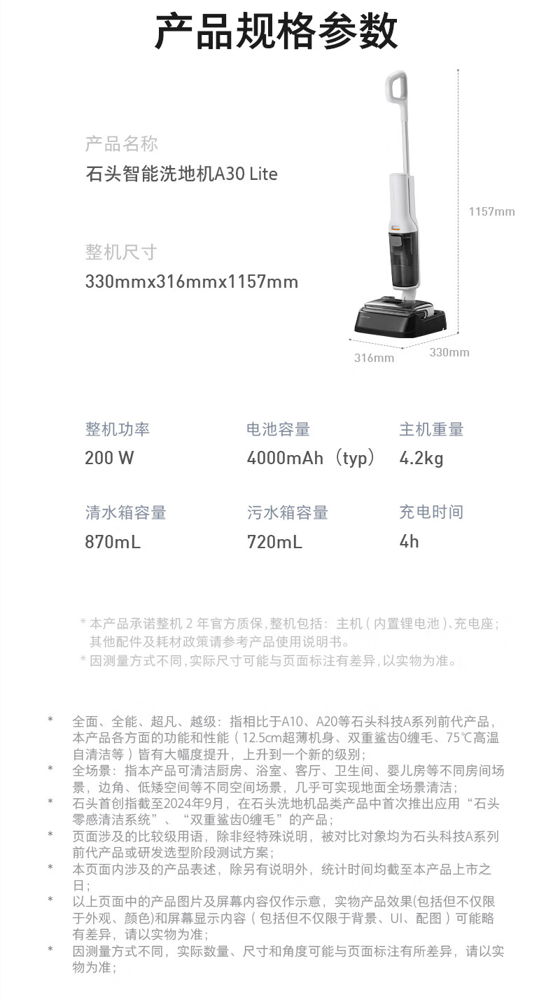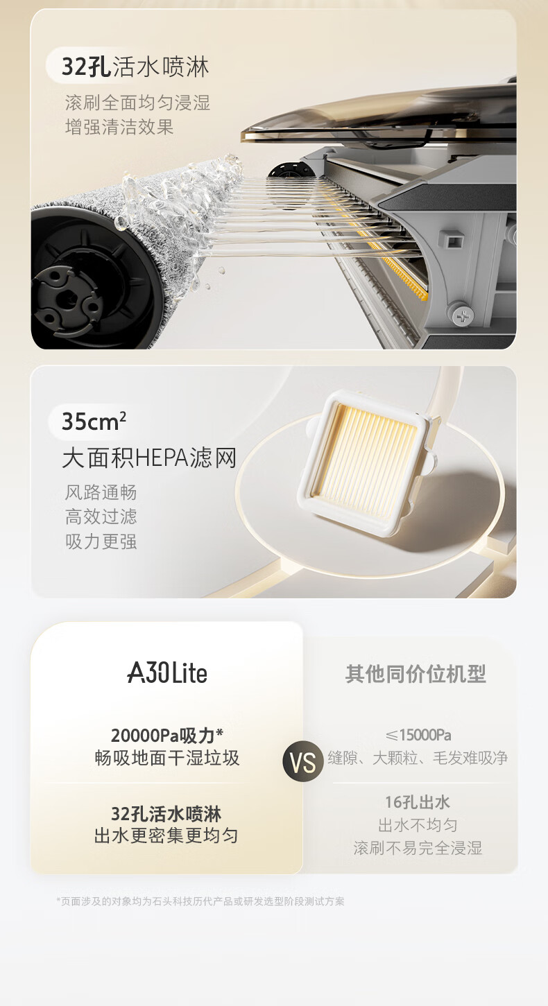 Stone A30 Lite lightweight power-assisted ultra-thin flat-laying 75 C self-cleaning handheld suction and mopping all-in-one mopping machine high-temperature sterilization sweeper and floor washer a30muse same model