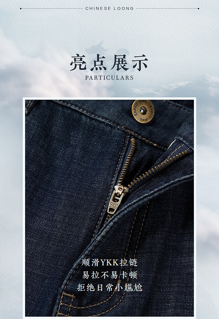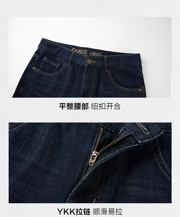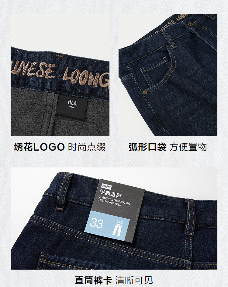 HLA Hailan House Straight Jeans Men's 25 Chinese Dragon Plus Velvet Thickened Pants Men's Winter