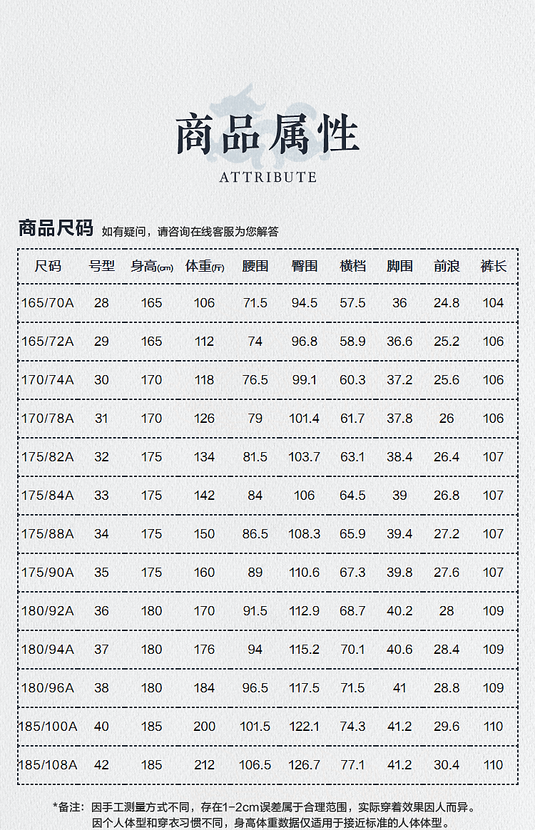 China (cm) 160-165/84-86 165-170 / 88-90 167-172 / 92-96 168-173 / 98-102 170-176 / 106-110