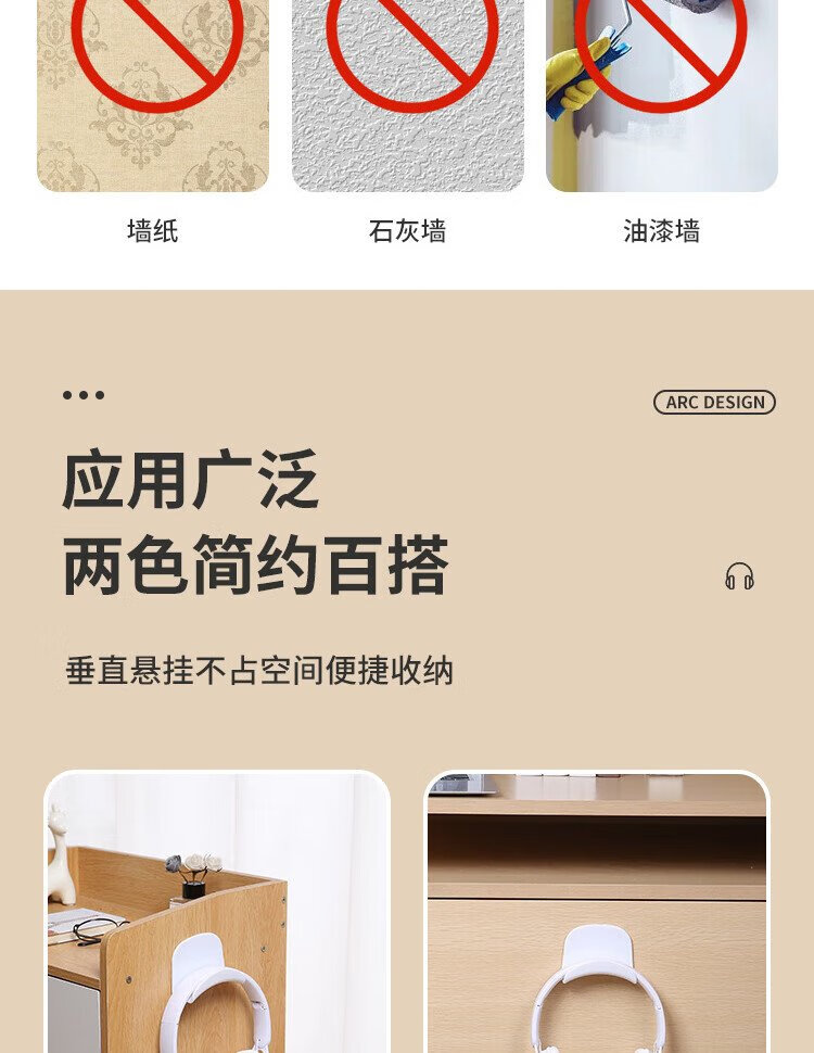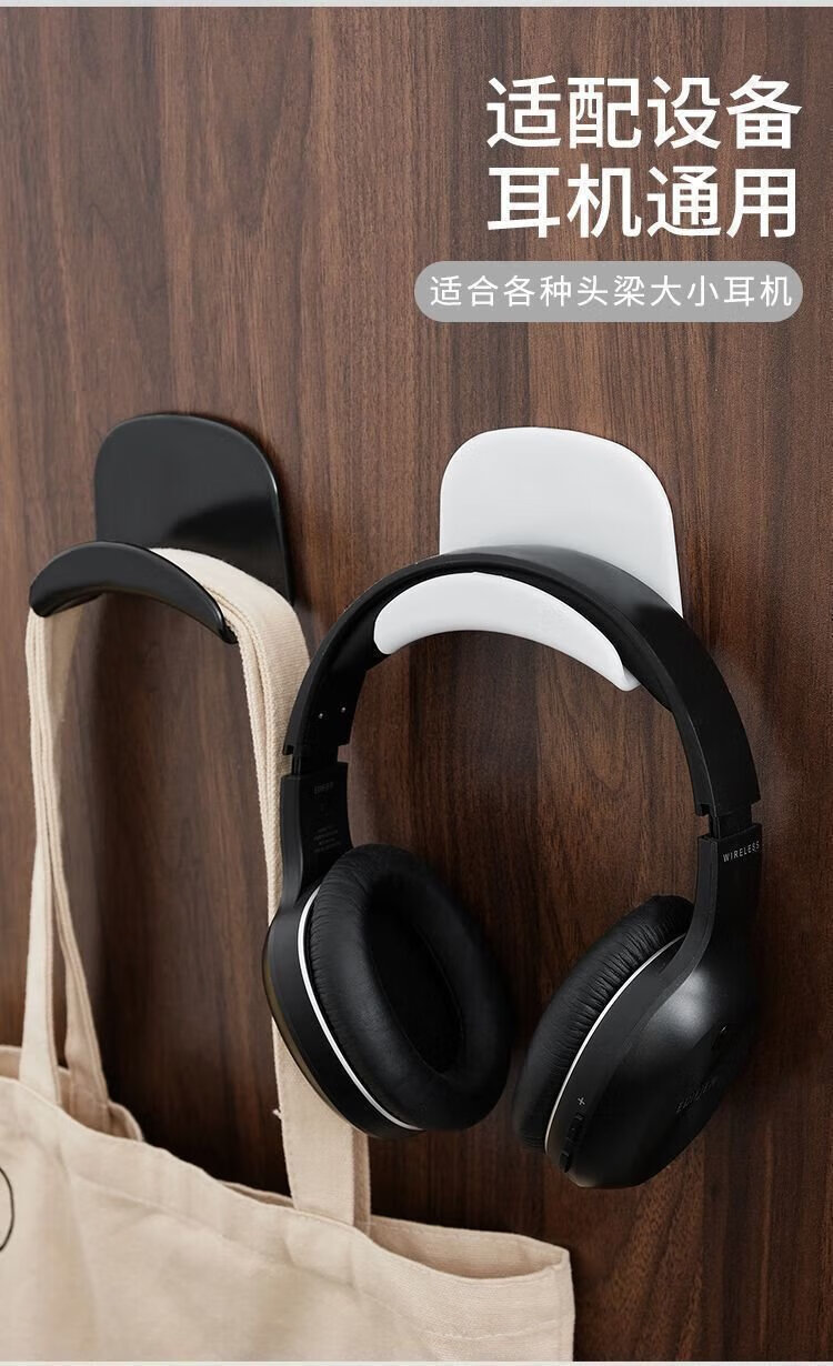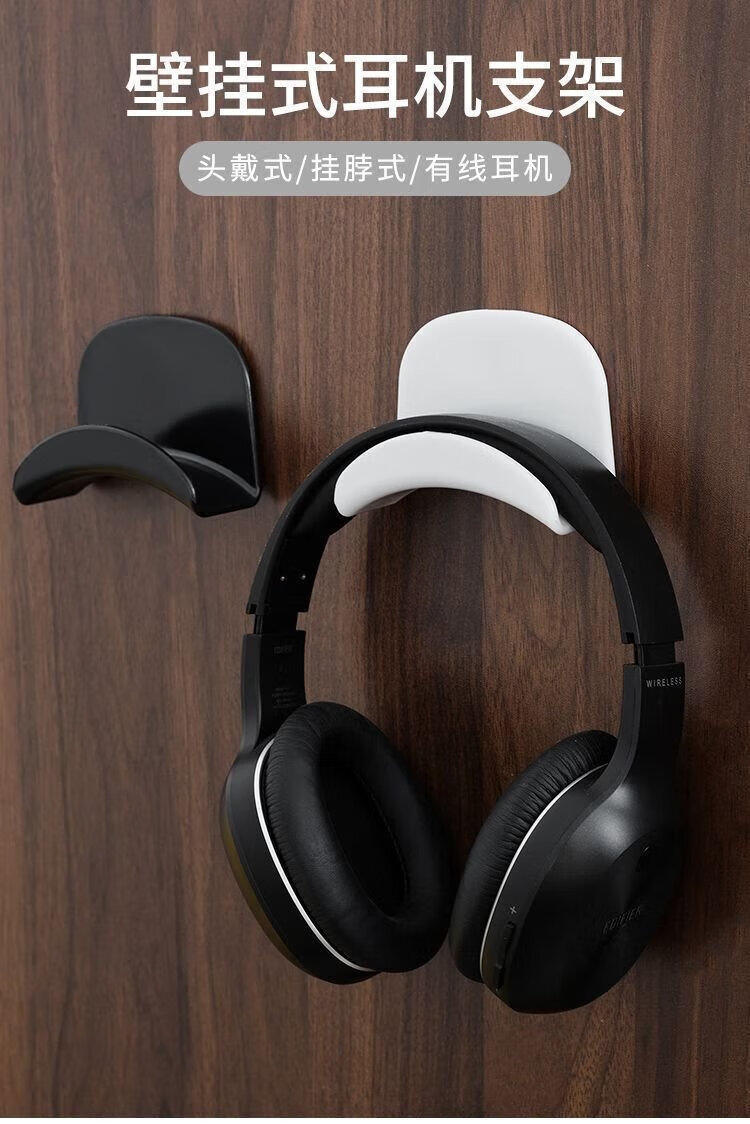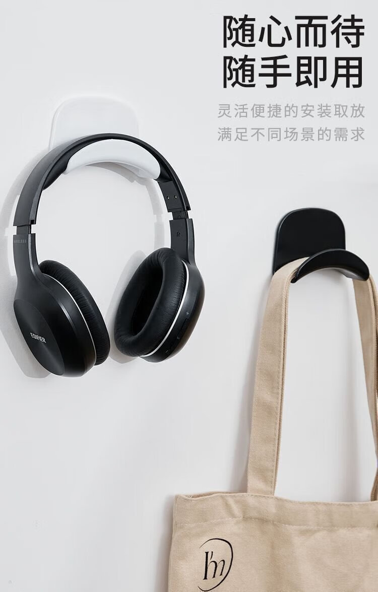 Dipur punch-free headphone holder headphone storage hook new ABS material fixed traceless glue dormitory hook white 2 pieces