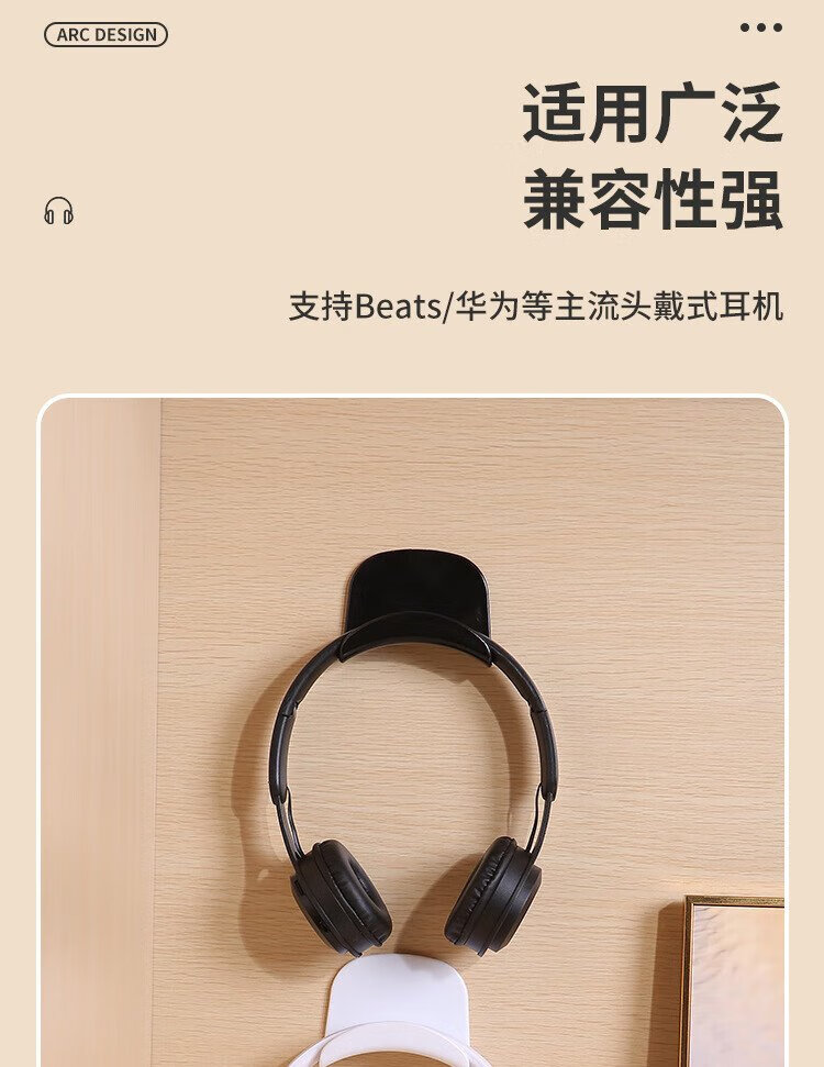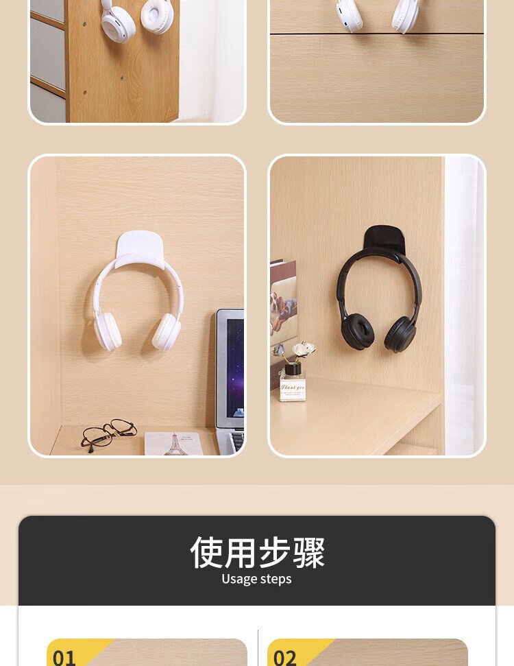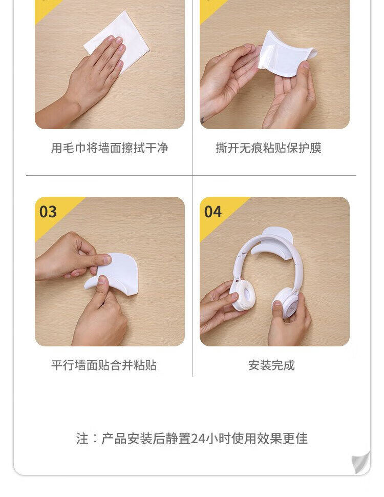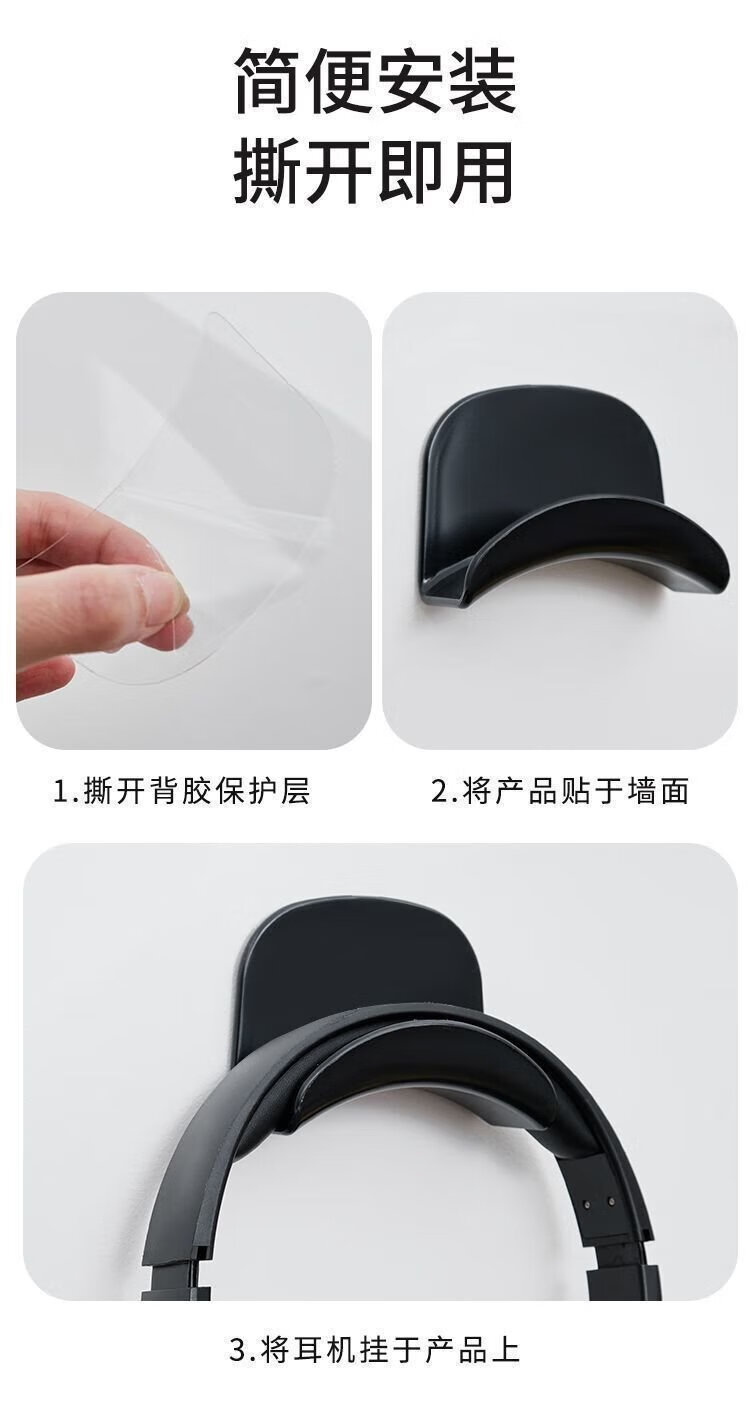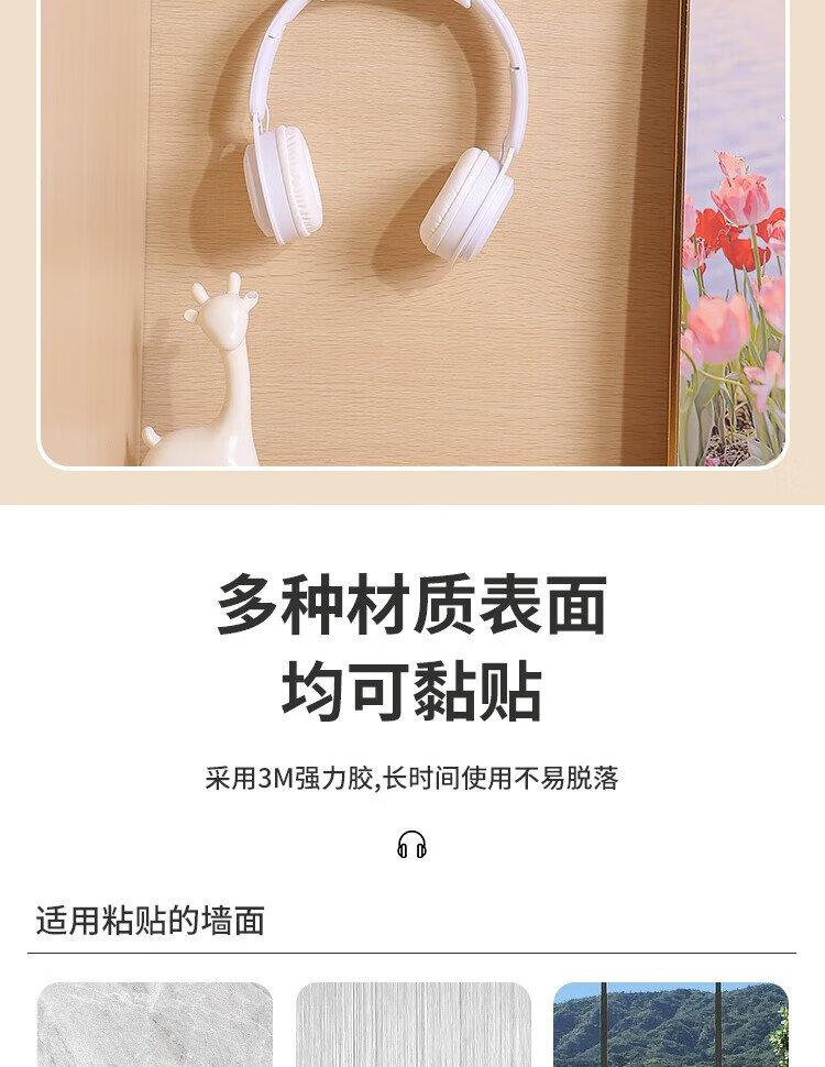Dipur punch-free headphone holder headphone storage hook new ABS material fixed traceless glue dormitory hook white 2 pieces